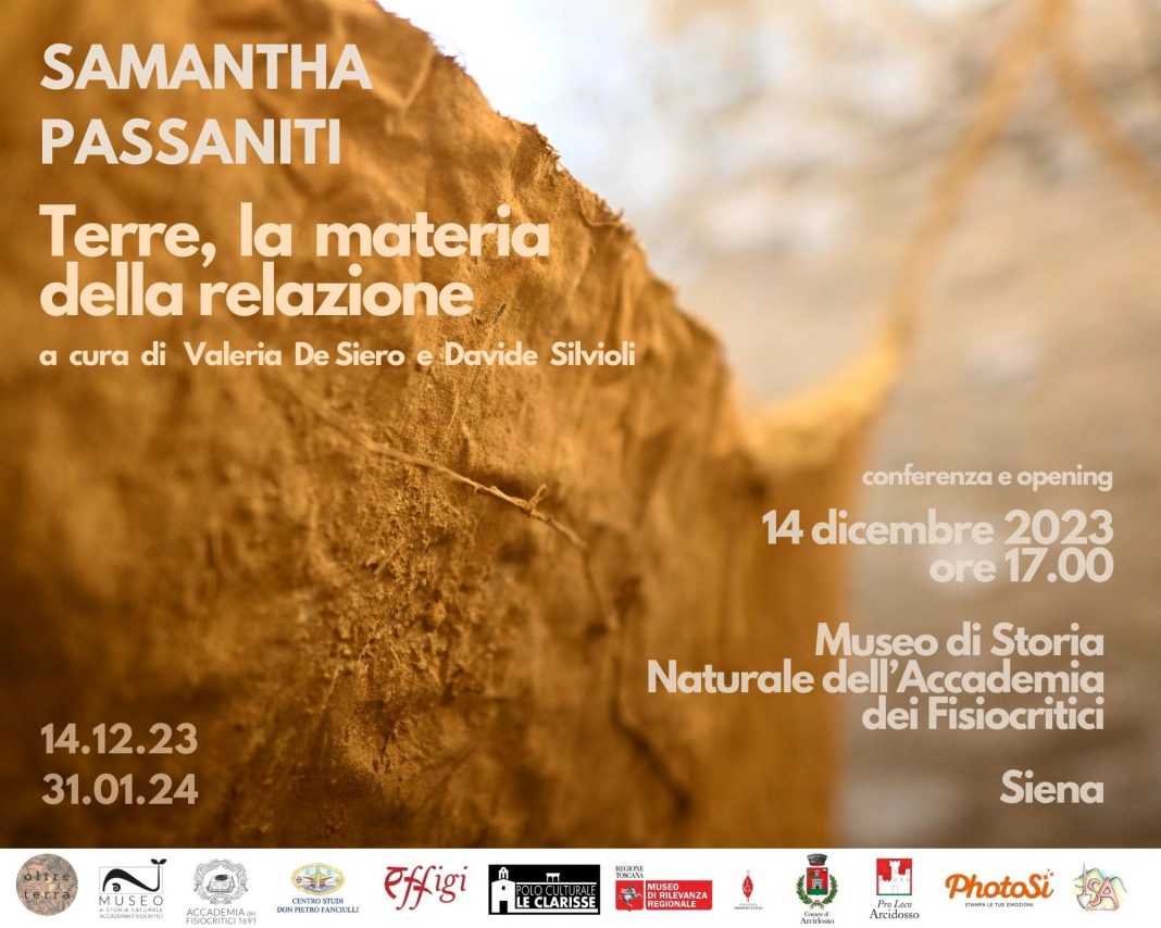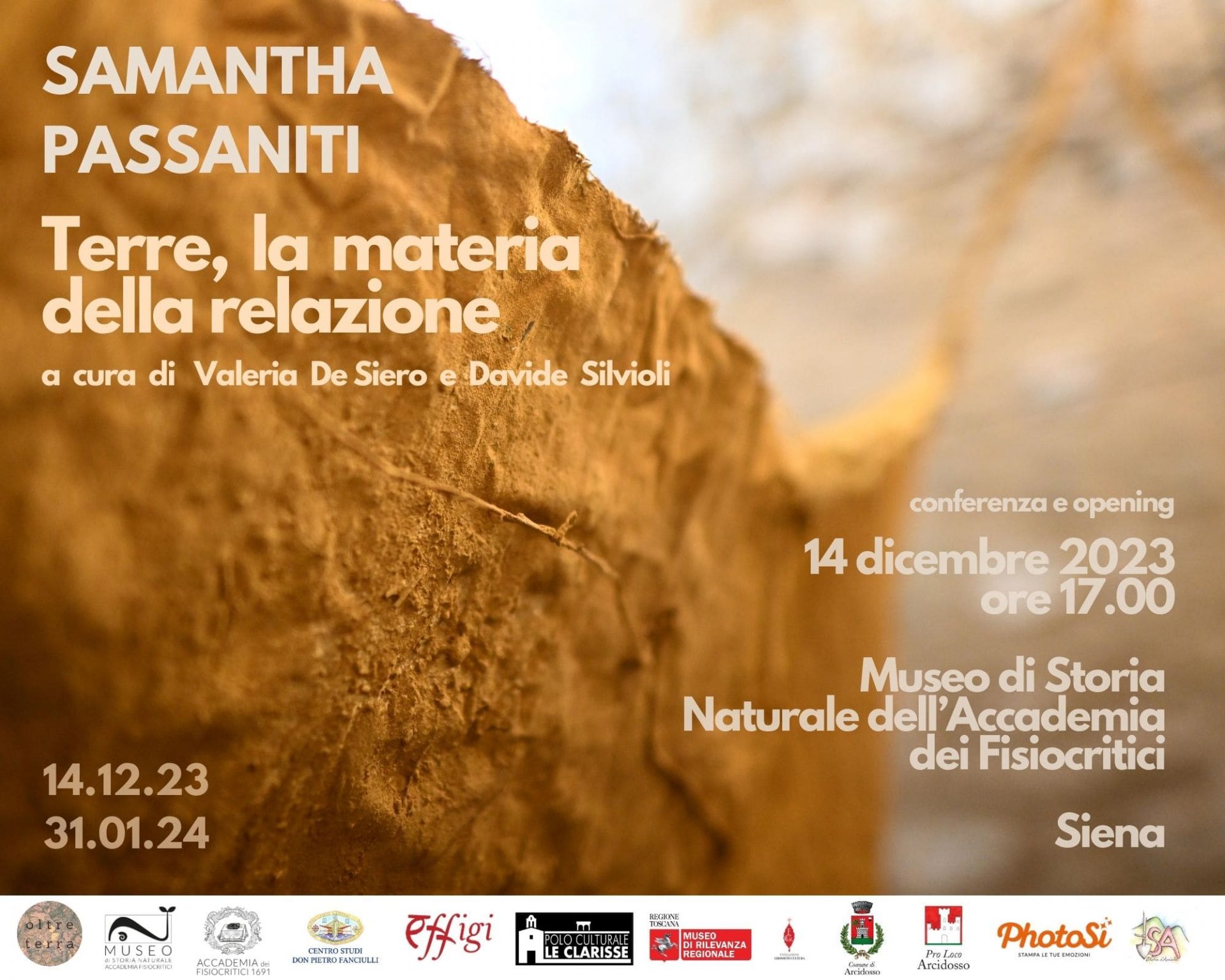 Giovedì 14 dicembre apre al pubblico la mostra personale di Samantha Passaniti “Terre, la materia della relazione”, a cura di Valeria De Siero e Davide Silvioli, presso il Museo di Storia Naturale dell’Accademia dei Fisiocritici di Siena.