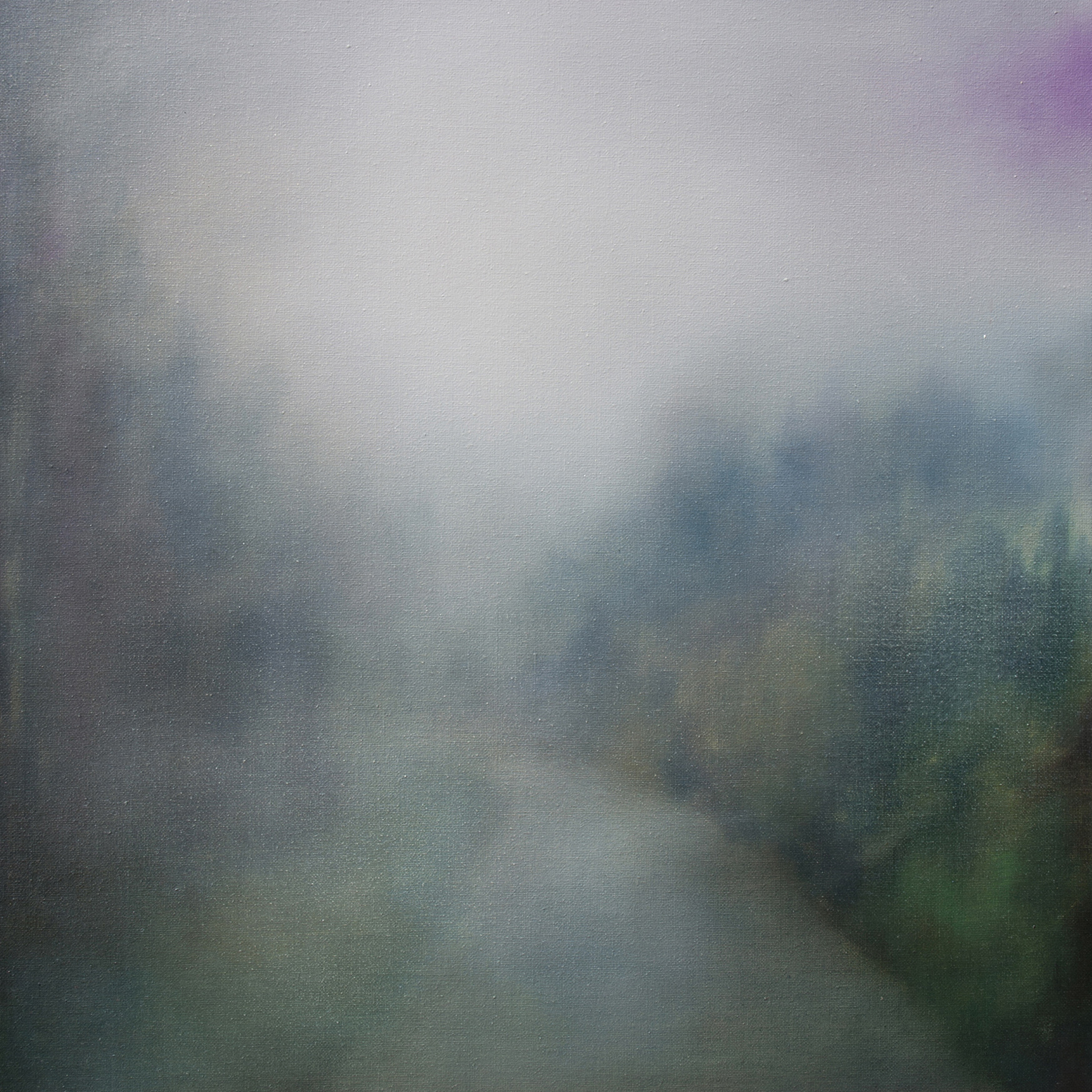 Per quanto sia vero che quello che il nostro occhio percepisce sono solo profili di alberi e uno scorcio di cielo, la nostra mente razionale avverte un varco tra quelle chiome, lo intuisce, e sente che qualcuno, lì, ha ricavato un sentiero. L’incanto del lavoro si pone proprio qui, in questo spiraglio di dubbio: anche quando la nebbia dilaga ovunque, in un’atmosfera quasi apocalittica, l’artista offre il suggerimento di un intervento esterno, di una purezza in qualche modo violata.