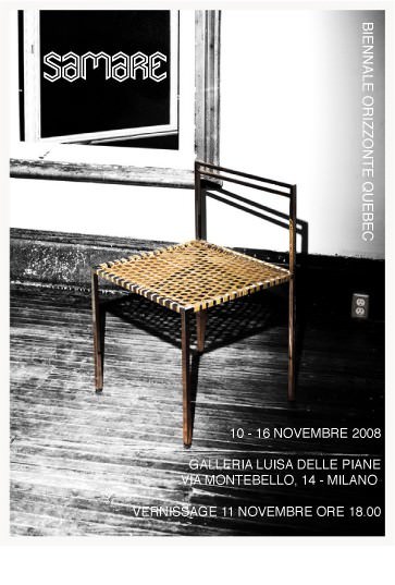 In seguito al successo delle mostre di New York e Toronto, in occasione della «Biennale Orizzonte Québec» il collettivo esporrà una serie di oggetti all’interno della Galleria Luisa Delle Piane nello spazio dedicato ai designer emergenti. Samare è un collettivo di Montréal composto da 4 architetti e designer : Laurie Bedikian, Nicolas Bellavance Lecompte, Mania Bedikian e Patrick Meirim de Barros