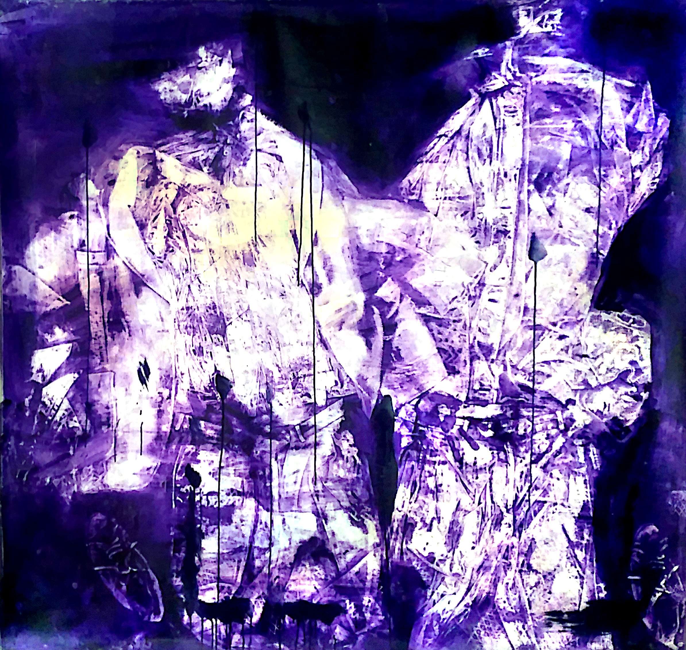 Tecnica: Olio su carta. E' l'arte del frammento, in modo tale che nel frammento stesso l'informazione cromatica salti da un frammento all'altro creando un nuovo sound formale, la tecnica si chiama jumping color. In questo impulso luminoso si cerca di catturare l'essenza dell'anima dei soggetti rappresentati. La radice di questa tecnica è nel cubismo analitico. Mentre nel cubismo analItico tutta la superficie pittorica veniva coperta dalla campitura cromatica, nell'arte dicroica solo dove c'è il colore e il frammento risiede lo spazio pittorico di rappresentazione, il resto è vuoto.