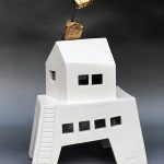 “(…) L’ ininterrotta esplorazione di strade inusitate ha ora portato l’artista al periodo bianco. Bianche sono le sue ultime dimore: bianche del bianco del gres, bianche del bianco opaco dello smalto, bianche di un bianco che pare fare passare la luce.