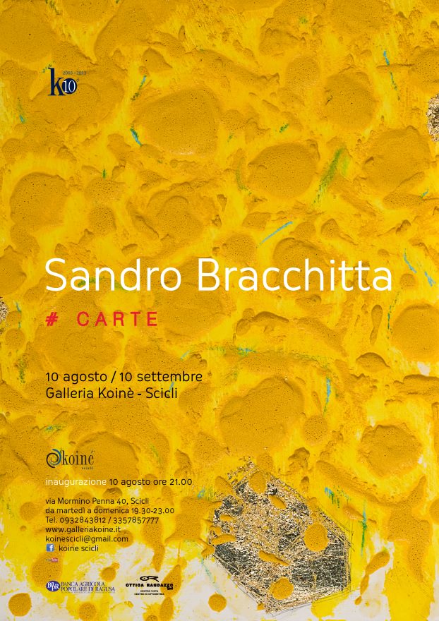 La mostra “#Carte” di Sandro Bracchitta verrà inaugurata sabato 10 agosto alle ore 21 e rimarrà visitabile fino al 10 settembre 2013 alla galleria Koinè di Scicli.