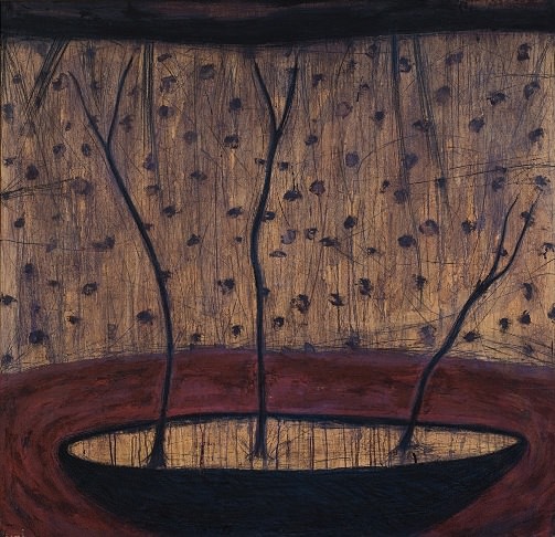 La sua grafica gestuale riprende la grande tradizione orientale, il segno sconvolge l’universo con eruzioni incontrollate.