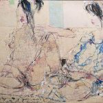 Il titolo della mostra “Il segno della camera rossa” deriva da quello di un volume sull’arte erotica di Trotti pubblicato nel 2017 da Grafiche Fioroni, presentato al pubblico per la prima volta in questa occasione. Evidente è l’assonanza con il romanzo settecentesco “Il sogno della camera rossa” di Cao Xuequin, una delle più importanti opere letterarie della letteratura cinese, fondato su una trama labirintica che ha al centro una complessa storia d’amore raccontata con acuto realismo ma anche con fervida fantasia. Il libro di Trotti comprende una selezione di opere di carattere erotico corredate da pensieri e riflessioni dell’artista che si racconta con assoluta immediatezza. Vi compare anche la ristampa anastatica di un testo del 1981 intitolato “Moravia e il segno erotico di Sandro Trotti” nel quale Alberto Moravia così commentava l’arte del maestro marchigiano: “È un segno ‘continuo’, come se l’ispirazione fosse una matassa e si tira il filo, la matassa si srotola e immediatamente disegna nello spazio l’oggetto che Trotti intende rappresentare. Ma avviene che quest’oggetto è il nudo femminile; di conseguenza l’ispirazione si potrebbe anche chiamare ossessione”.