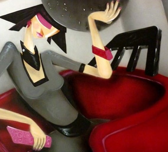 Brigitte non corrisponde ai canoni classici e collettivi di “bellezza”: il naso imponente ed arcuato, l'enorme occhio languido e i fianchi formosi la rendono però “unica” e interessante, capace di catturare l'attenzione dello spettatore e di invitarlo a indulgere nell'osservazione del dipinto alla ricerca di particolari che ne rivelino la personalità. Madame B è semmai un'icona di stile e di femminilità, un'ammaliante seduttrice che si svela con sapiente e misurata maestria rivelando, di opera in opera, un carattere poliedrico e inafferrabile. Brigitte appare sempre a proprio agio nelle differenti situazioni in cui viene raffigurata, mantiene la propria compostezza anche mentre ci osserva, imperturbabile e distante, languidamente sdraiata su un letto o su una poltrona, ricordandoci le immagini più intense di Valentina disegnate da Guido Crepax e Milo Manara. Ma è nei contesti meno intimi, come i bar o i salotti, presumibilmente affollati, che mostra appieno la propria sensualità, fiera e consapevole: gli abiti raffinati che mettono in risalto il collo sottile e le spalle, gli ampi cappelli a tesa larga che in parte ne nascondono il viso, la ricercatezza dei gioielli e del trucco rivelano la cura con cui si è preparata all'appuntamento, l'attenzione con cui ha scelto il lato di sé che intendeva mostrare. Il gusto per i dettagli, in particolare per gli accessori, per la centralità e la caratterizzazione della figura femminile e, soprattutto, per il dinamismo impresso alla composizione da linee di forza oblique, rimandano all'opera di una pittrice che ha dedicato un'ampia parte del proprio lavoro alla fascinazione femminile: Tamara De Lempicka.