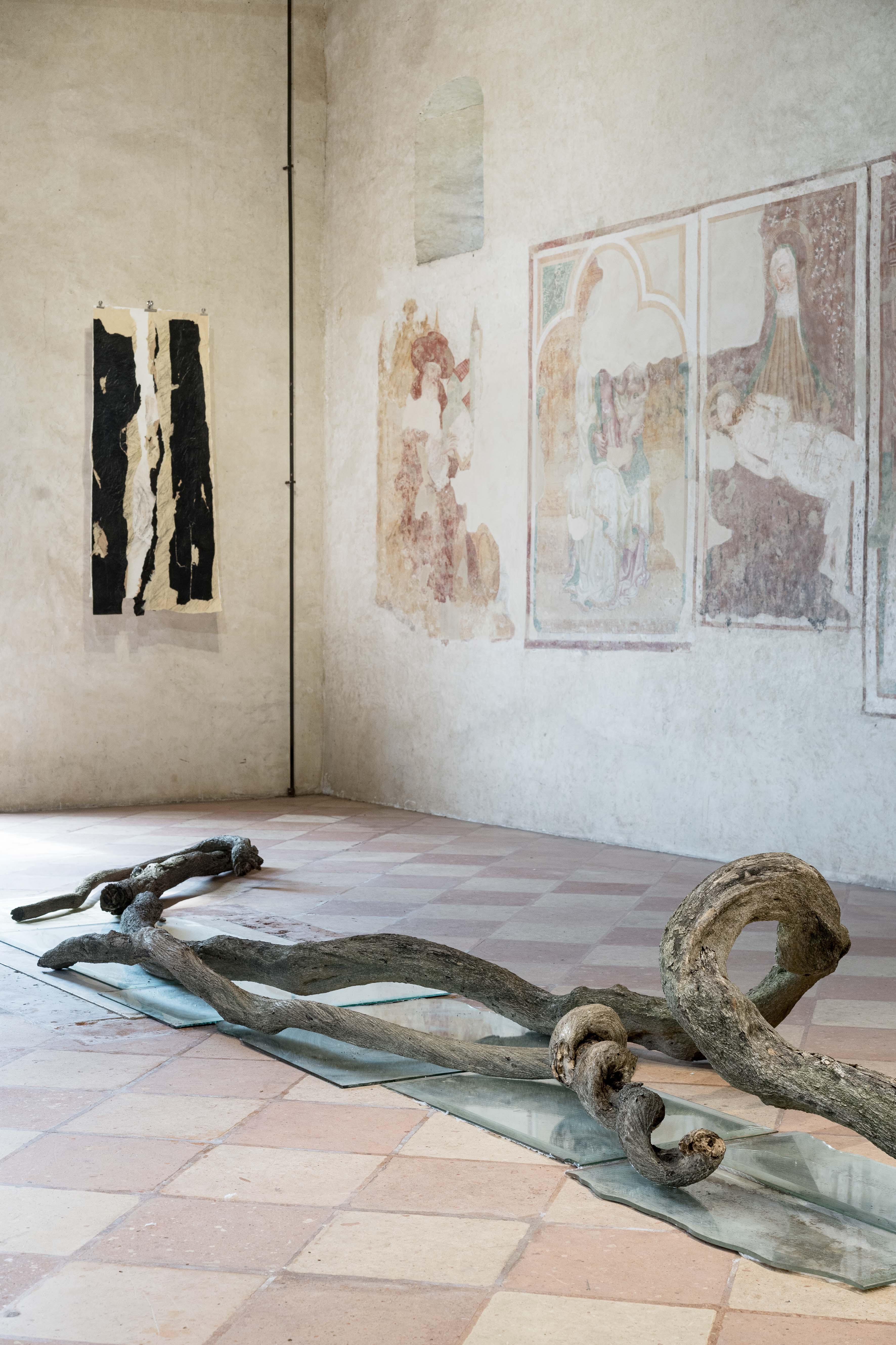 Nell’Oratorio Santa Maria Assunta colpisce l’impatto dell’installazione in cui è protagonista un tronco di glicine, tagliato da oltre tre anni, la cui superficie e forma si è modificata per gli agenti atmosferici e il tempo, capace ancora di trasmettere forza, vitalità e carattere.