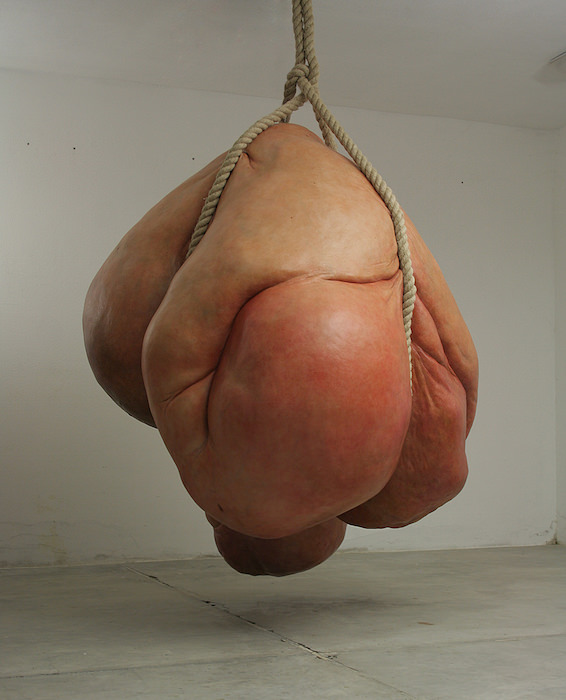 Attraverso una tecnica di modellazione del silicone, successivamente cristallizzato nella resina, i Santissimi creano meticolosamente sculture a misura umana (che così diventano specchio riflesso dello spettatore) di corpi indeboliti e crudelmente imperfetti, portatori sani di deformazioni emotive e fisiche. Corpi dagli occhi chiusi ed il volto impassibile. Corpi disturbanti ma immersi in una calma irreale perché hanno imparato l’angoscia esistenziale e riconosciuto l’incompletezza come condizione inevitabile dell’esistenza. Ogni opera suggerisce la promessa di un movimento che non arriva mai, dilatando il tempo in un unico, infinito attimo. E tra angoscia e malinconia, si susseguono fossili anatomici e corpi da incubo, fino ad arrivare a una scultura come “Mom”, per la prima volta in esposizione, in cui la forma torna all’origine e la carne diventa pura materia da plasmare, embrione indefinito che evoca inquietudini ancestrali.