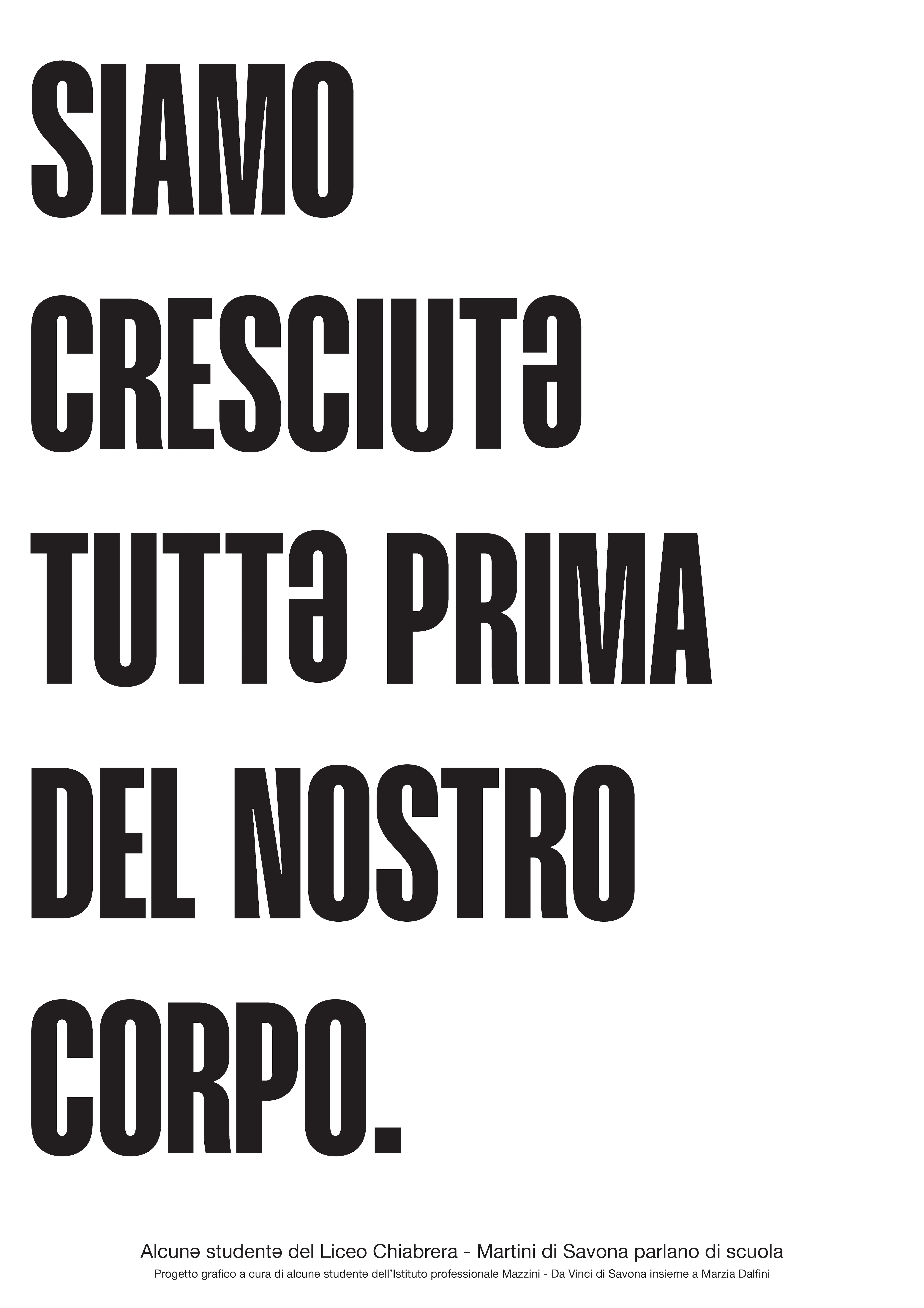Dalla solitudine alla costruzione di nuove reti, dallo stigma sociale alla responsabilizzazione collettiva, dalla negazione del diritto all’istruzione alla costruzione di lotte per trasformare la scuola. Attraverso pratiche di conversazione e condivisione di esperienze personali, ci interroghiamo su visibilità e invisibilità nel contesto scolastico e in quello domestico, a partire da alcune domande "A scuola come sto?", "La comunità studentesca?", "E il corpo?" e dalle urgenze emerse dalle voci de* partecipant* al laboratorio. Insieme a Marzia Dalfini, le/gli student* hanno prodotto i manifesti che verranno affissi negli spazi di Palazzo Santa Chiara, attraverso una pratica di attacchinaggio collettivo.