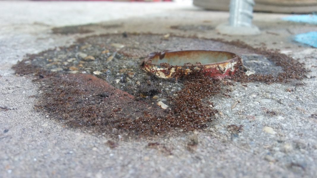 Sara Minighin con l’opera Tèglakép, frammenti di terre, misure variabili, 2018