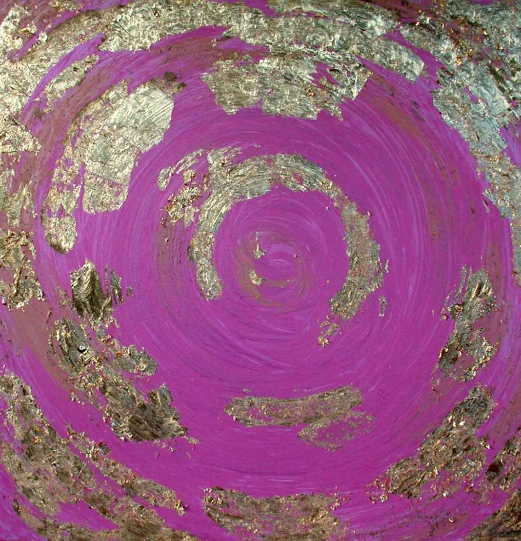 La seconda serie LOVE è costruita prevalentemente voragini di colore e bagliore dorato e argentato per indicare la forza concentrica e ipnotizzante, infinita (senza inizio e fine) dell’amore. Esso è sentiment universal, che radica il caos e dunque l’ordine da esso, un deus ex macchina distruttore e costruttore di ogni cosa.