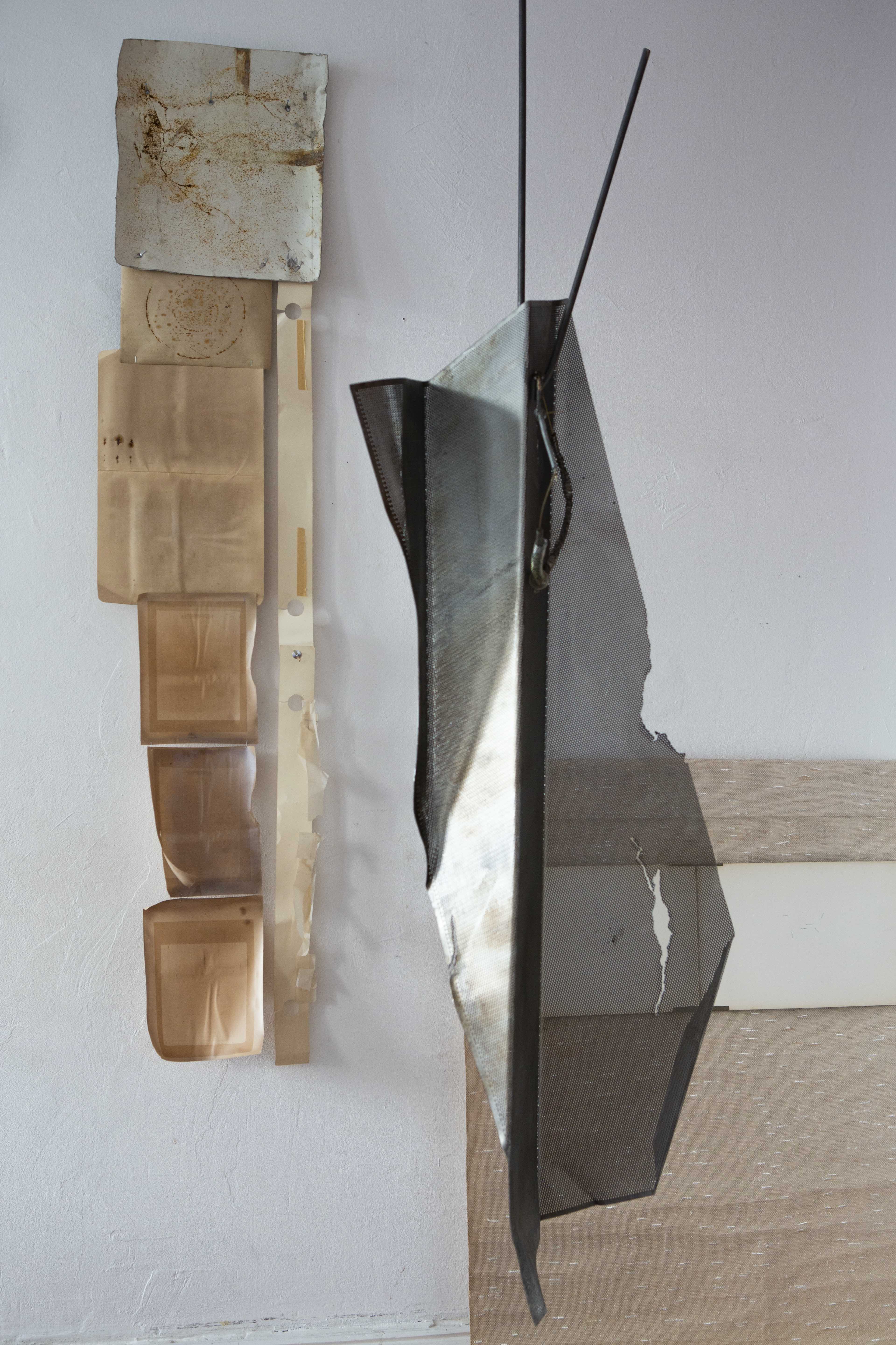 Nella galleria, queste costellazioni di manufatti, disposti a formare archi e assi risonanti, sono presentati su tre basi monolitiche in pietra e marmo. I visitatori possono rilassarsi sedendo su grandi blocchi di lana grezza compressa, tinta in varie sfumature di colore, accatastati intorno al perimetro dello spazio espositivo; da lì possono vedere una serie di arazzi di carta appesi al soffitto. Gli arazzi, realizzati con la tecnica del collage, utilizzano carta di diverse trame, opacità, grammature e dimensioni per creare un ambiente astratto nei toni del seppia e del blu.