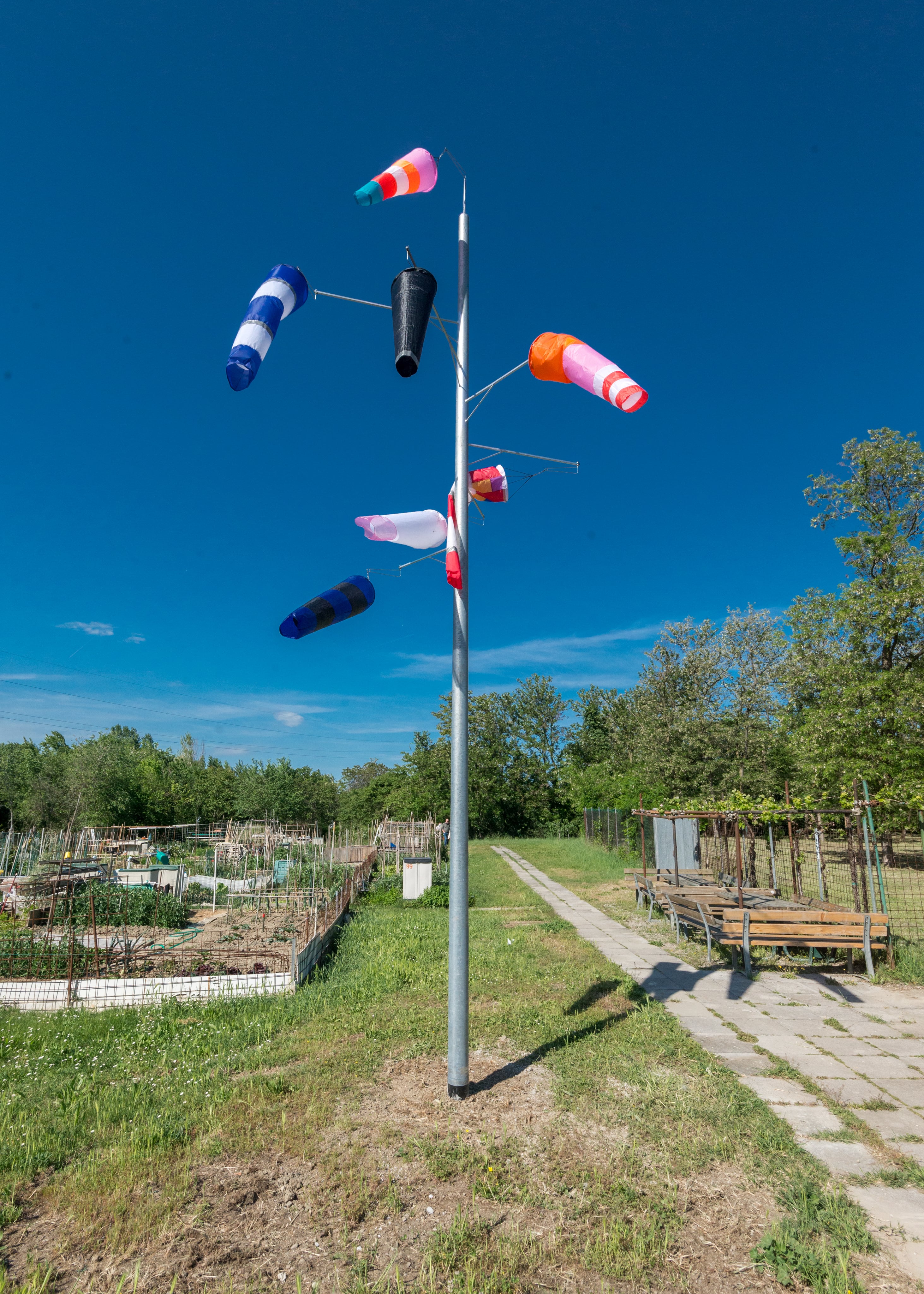 Nel cortile della Fabbrica del Vapore è anche presente l’opera Cosinus di Margherita Morgantin, delle maniche a vento a cui l’artista affida dei messaggi di dibattito politico sui tempi in corso e sulla postura dell’individuo in relazione alla sua comunità, mescolando antico e contemporaneo in una saggezza atemporale.