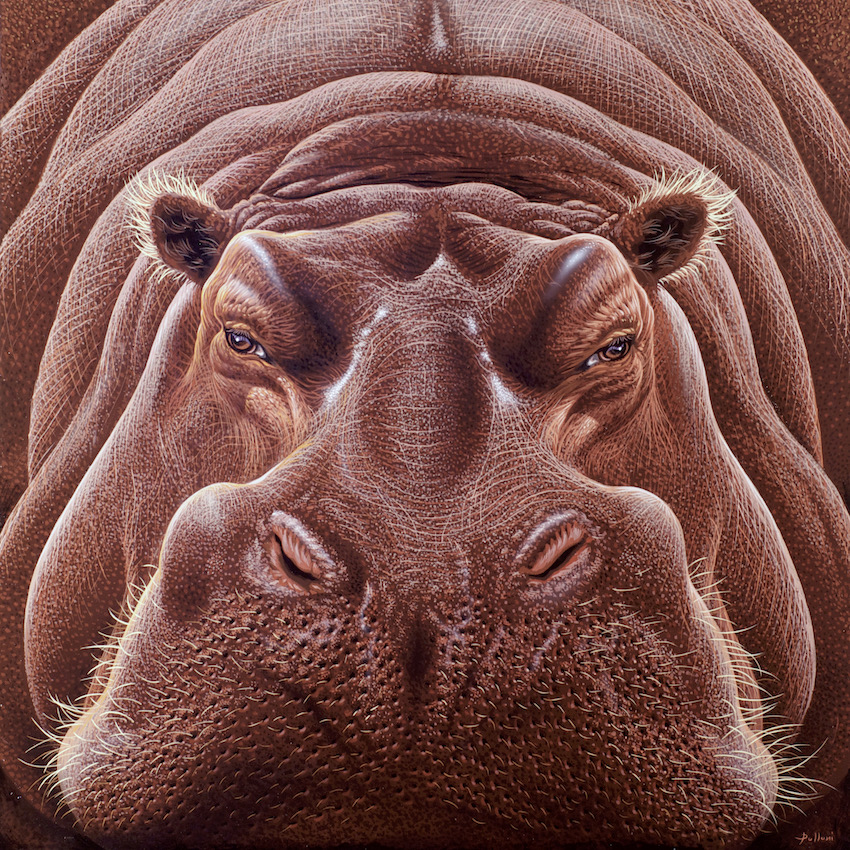 I “Ritratti” di Polloni rivelano sin dal titolo la filosofia sottesa dell’artista, nella sua riconoscibilità del soggetto: non quell’animale, ma un animale. Si spiegano in tal modo i titoli delle opere; codici neutri, in un invito oltre l’evidente. Così l’immagine, l’animale, è depositario di differenti livelli di lettura. Il punto interrogativo da affiancare a questi “ritratti” è d’obbligo, e lascia a ognuno la possibilità di attribuire o meno l’essenza a immagini e animali. Si presuppone pertanto uno sguardo mai scontato, capace di andare oltre l’illusoria uniformità della superficie.