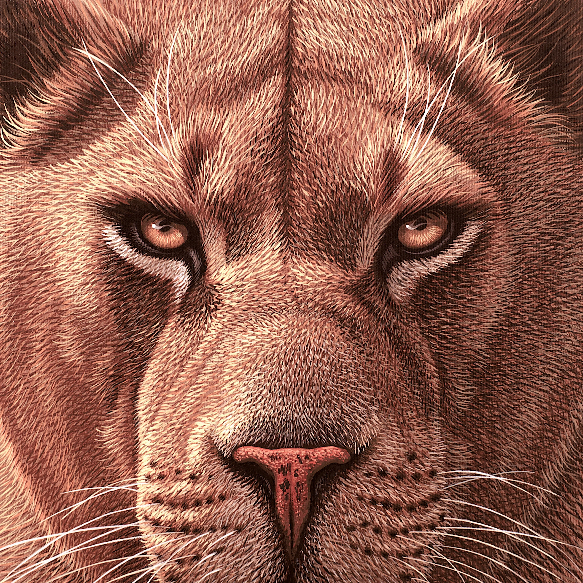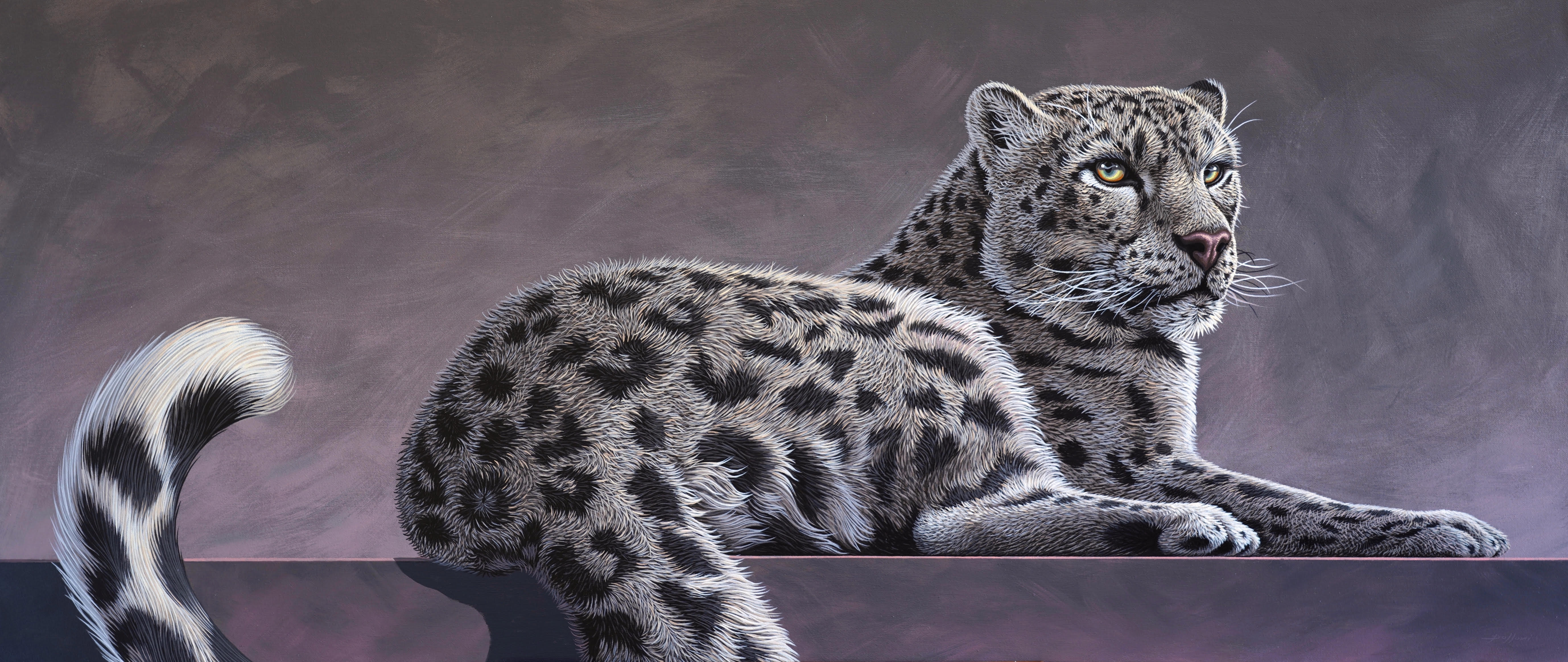 Gli animali di Polloni, infatti, presuppongono uno sguardo che va al di là delle apparenze. Sono resi mediante pose teatrali debitrici della prospettiva barocca. Il boccascena diventa la ‘linea’ che introduce lo sguardo nella dimensione dell’infinito, attraverso atmosfere iridescenti: lo spazio che si crea è uno spazio altro. Entro questa nuova dimensione l’animale si atteggia regalmente, in un’ottica affine a quella delle raffigurazioni rinascimentali, guardandoci negli occhi, catturando qualcosa del nostro sguardo umano per conservarlo intatto. È evidente la consapevolezza di essere osservati. Ma loro non sono in posa, non sono umanizzati. Sembrano, piuttosto, placidamente soddisfatti di sé.