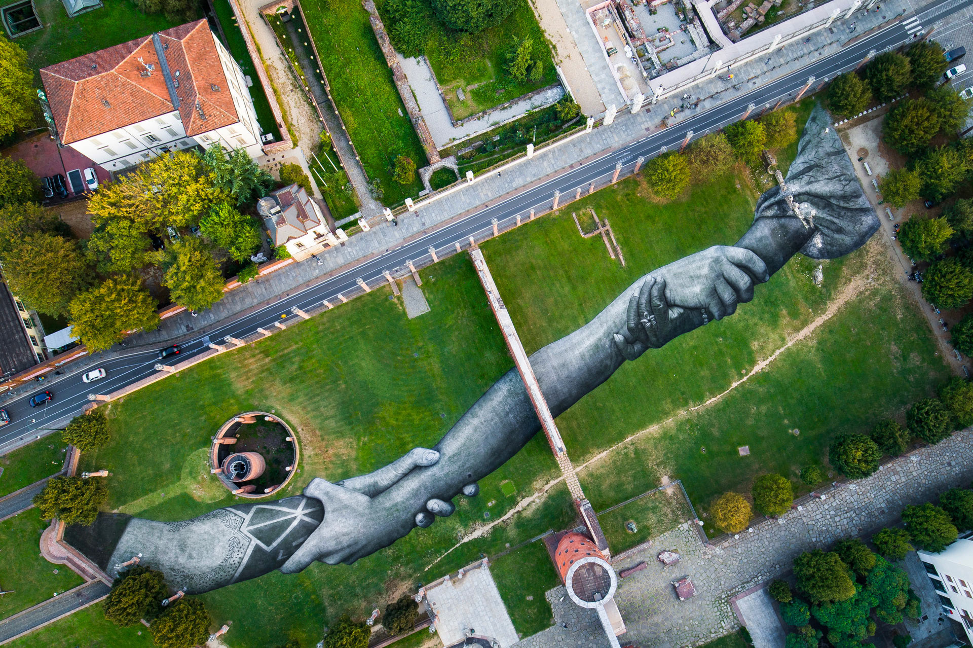 Due mani che si tendono l’una verso l’altra e si stringono, in una presa che trasmette fiducia e aiuto reciproco: è questa l’immagine al centro del progetto Beyond Walls – Oltre i muri firmato dall’artista franco-svizzero Saype.