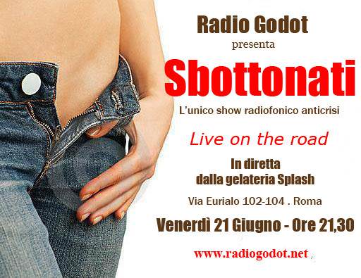 Unico show radiofonico anticrisi in versione Live on the road. In diretta dalla GELATERIA SPLASH lo Sciamano e Laleti Sbottoneranno i loro ospiti con la complicità del pubblico che potrà vincere…potrà vincere…