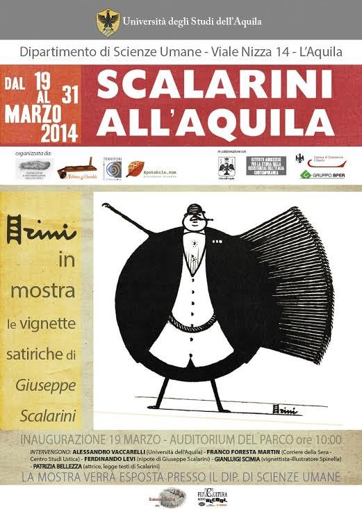 Dal 19 al 31 marzo prossimo, nei locali del Dipartimento di Scienze Umane dell’Università dell’Aquila, (ex Ospedale S.Salvatore), verrà allestita la mostra “Scalarini all’Aquila”.