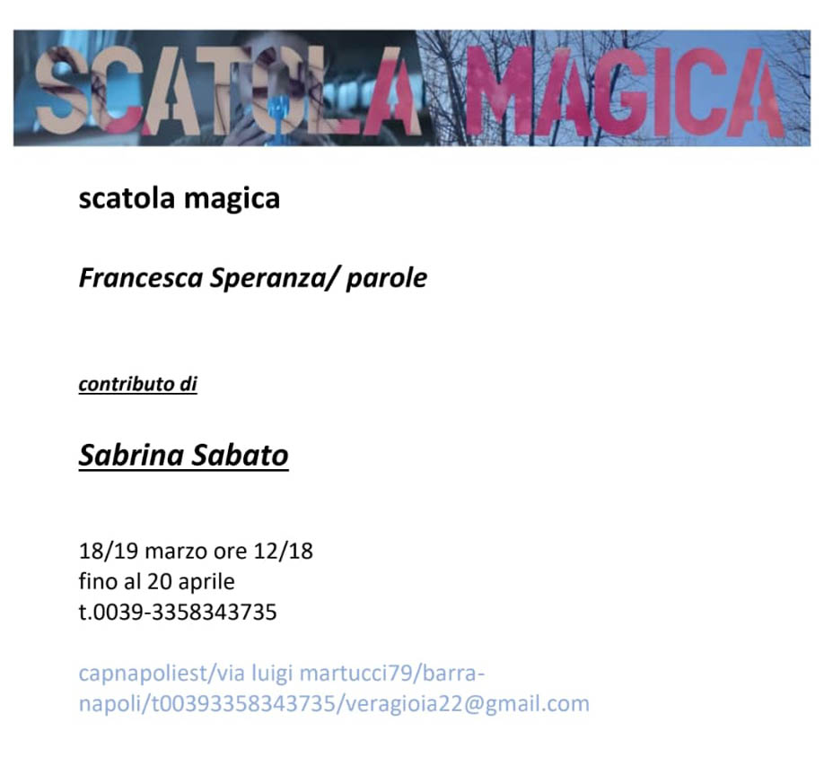 di sabrina sabato 18/19 marzo ore 12/18 fino al 20 aprile