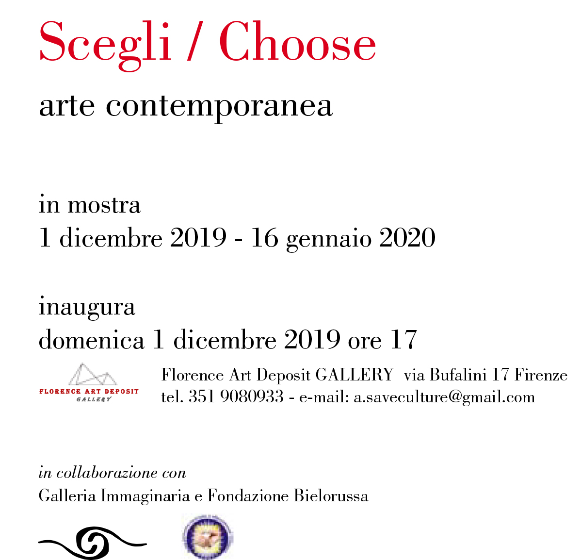 La mostra collettiva Scegli/Choose, in collaborazione con la Galleria Immaginaria e la Fondazione per la Cultura e sviluppo (Belarus), è un mosaico visivo di espressioni artistiche internazionali che dialogano tra loro.