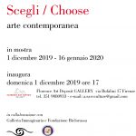 La mostra collettiva Scegli/Choose è un mosaico visivo di espressioni artistiche internazionali che dialogano tra loro. Ogni artista è presente con una o più opere realizzate in un arco temporale che va dagli anni Novanta a oggi. In mostra oltre 70 opere di artisti storici e emergenti.