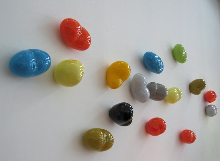 EVA MOOSBRUGGER (AUSTRIA), scultrice presente in importanti mostre, musei e gallerie in Giappone, Europa e Usa, nel 1998 ha esposto alla Biennale di Venezia, “Venezia Aperto Vetro”. In mostra espone “Black Situation” e “Friendly thoughts”. Quest’ultima è un’installazione a parete composta da diversi elementi in vetro soffiato, forme organiche, tondeggianti e colorate. Ogni elemento ha un colore differente, la lucentezza del materiale e le sue declinazioni cromatiche sono gli elementi vitali della sua ricerca che mette in relazione il materiale artificioso e le forme di natura organica. Il lavoro della Moosbrugger è esaltato nelle installazioni site specific che, seppur composte da elementi multipli, ogni volta sono opere uniche studiate appositamente per la galleria o il museo ospitante.