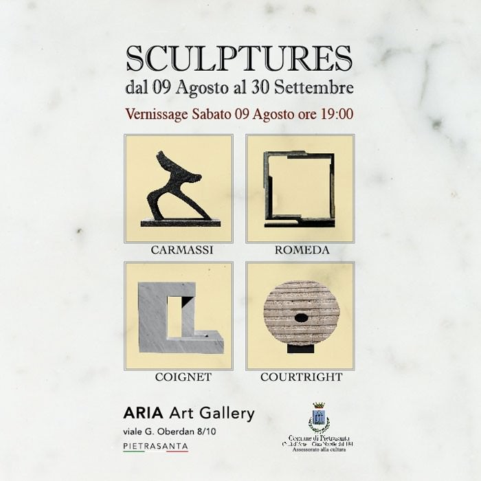 La mostra “Scuptures. Carmassi-Coignet-Courtright-Romeda” non poteva che esser presentata negli spazi di AriaArtgallery, dove un tempo si trovava il prestigioso Laboratorio Palla, uno dei più antichi e importanti laboratori di scultura di Pietrasanta. La scelta di presentare le opere di quattro maestri della scultura contemporanea è stata possibile grazie al lavoro svolto dalla ElleArte, la società che riunisce al suo interno importanti personalità dalla pluriennale esperienza nel settore della lavorazione dei materiali lapidei, come il Laboratorio Angeli, la ElleMarmi di P.A.Luciani e la Fondazione dell’architetto francese J.M.Wilmotte.