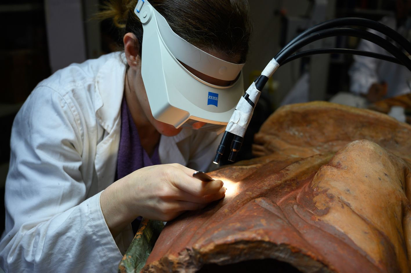 La scultura policroma in terracotta alta 131 cm e raffigurante l’Arcangelo Gabriele era stata attribuita già nel 1958 alla scuola del Verrocchio dallo storico d’arte Ludovico Ragghianti, per poi essere riconosciuta nel 1999 da Pedretti come opera giovanile di Leonardo da Vinci. Eseguita alla fine del Quattrocento e collocata nella Pieve di San Gennaro a Capannori (Lucca), l’opera subì un grave danno nel 1773 quando, secondo alcuni documenti, cadde in frantumi dopo essere stata colpita da una scala. Il restauro, finanziato dal Centro Leo-Lev e durato meno di un anno, è stato effettuato dal settore dei Materiali Ceramici, Plastici e Vitrei dell’Opificio delle Pietre dure di Firenze, sotto la direzione di Laura Speranza.