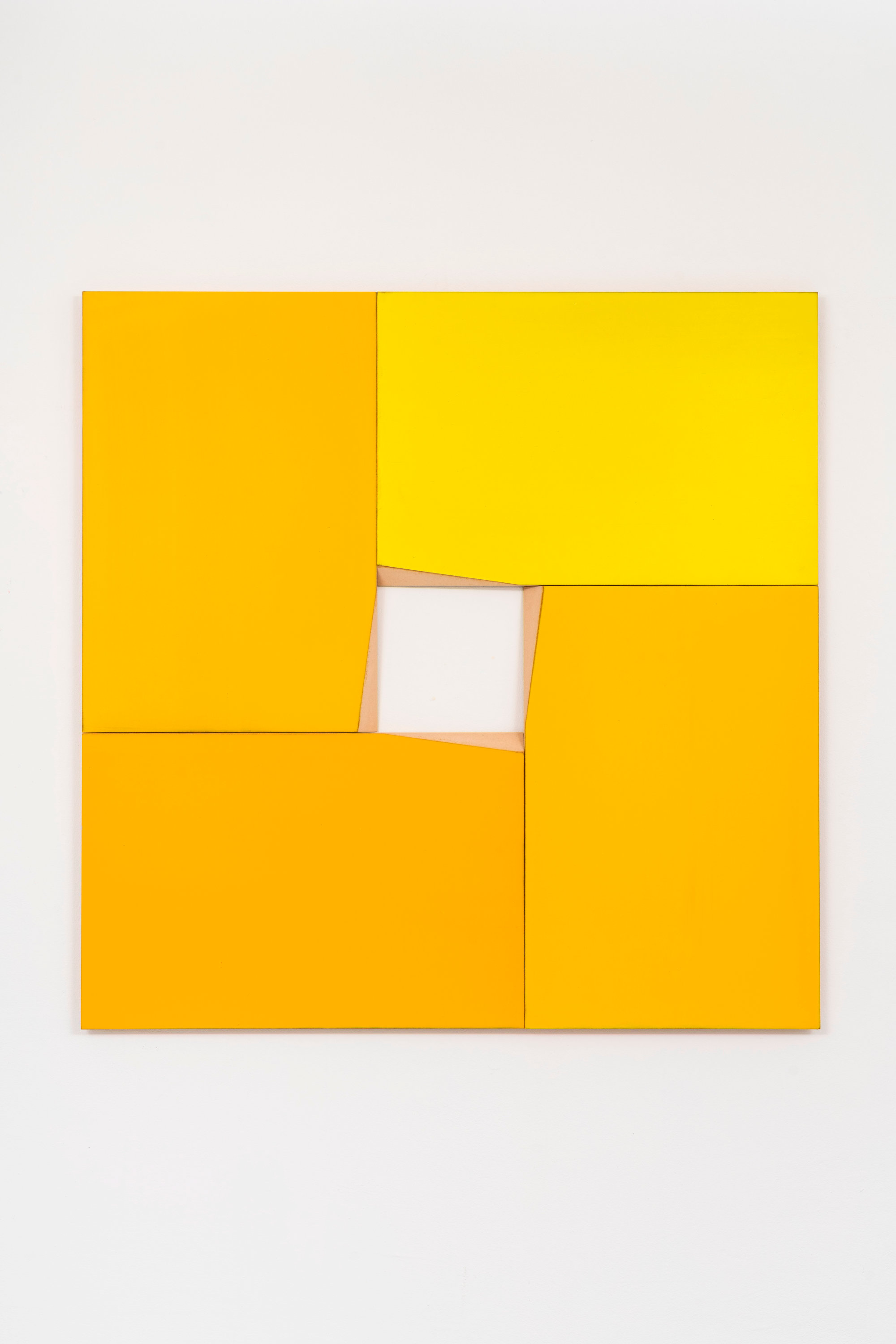 L’utilizzo del supporto in MDF (medium density fireboard), cifra stilistica dell’artista, contribuisce in modo essenziale a esaltare l’ambigua oggettualità dell’opera, suggerendo una percezione del dipinto come elemento concreto che necessita di farsi spazio e non solo di occuparlo. Anche il colore a olio, steso a campiture monocrome piatte e assorbito dal materiale ligneo, assume un carattere sostanziale in questo processo, divenendo parte integrante del quadro e non mero rivestimento della superficie.