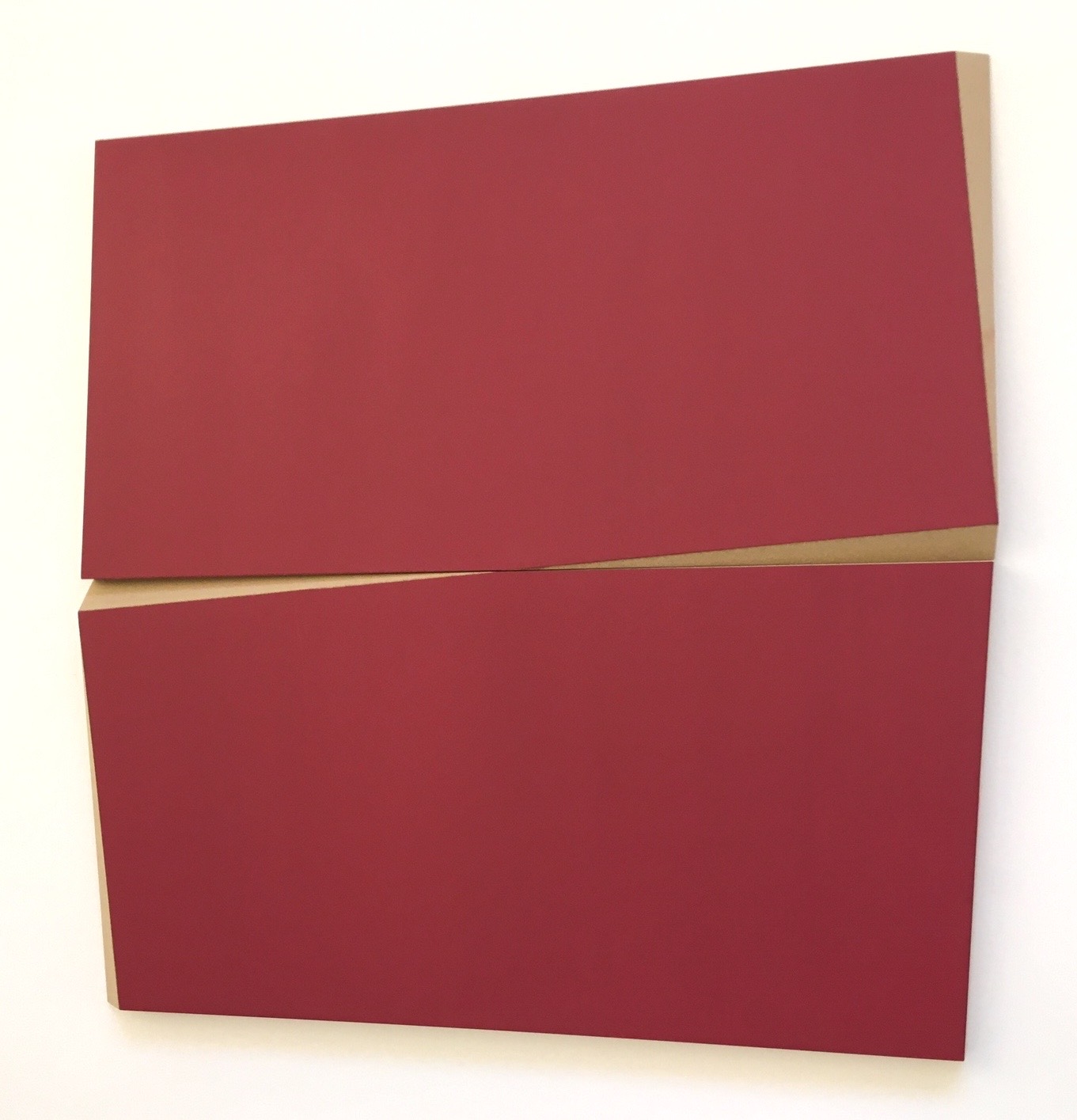 La stesura del colore su un materiale, l’MDF - medium density fireboard -, contribuisce ad esaltare l’oggettualità del lavoro, il suo essere un dipinto che ha una sua fisicità, definita dagli interventi che subiscono i bordi del dipinto stesso.