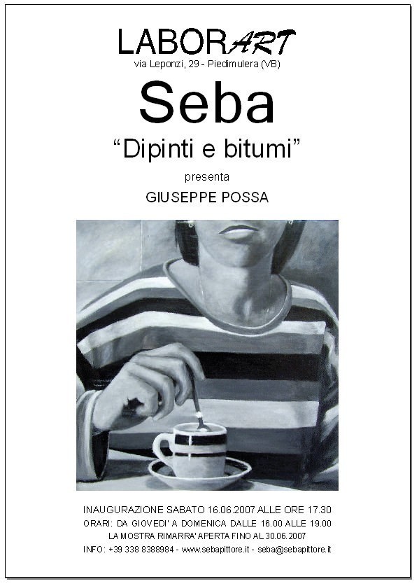 La galleria LABORART di Piedimulera (VB) ha il piacere di presentare una mostra personale di Seba dal titolo “Dipinti e bitumi”. La mostra è a cura di Giuseppe Possa.