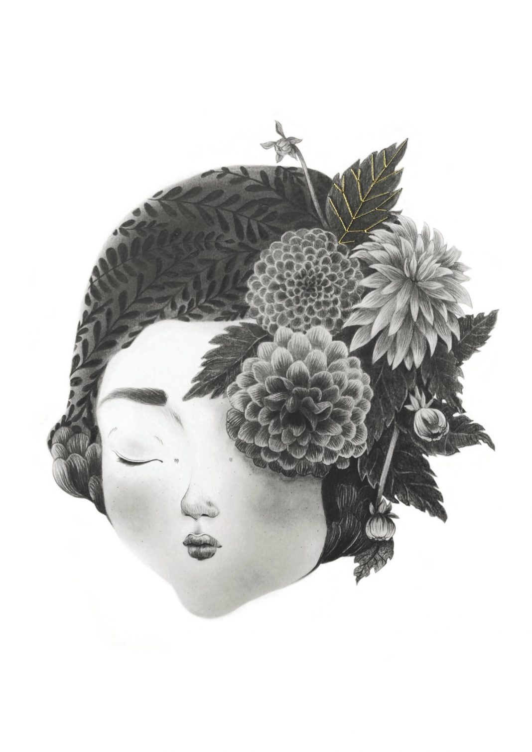In mostra 30 disegni e alcune ceramiche, ritratti di volti dagli occhi chiusi in cui vediamo sbocciare un delicato e meraviglioso erbario onirico. In un mondo frenetico, le giovani donne di Sefora prendono una pausa dall’esistenza, ospitando in esse piante, insetti e pesci. Attorno, solo candore.