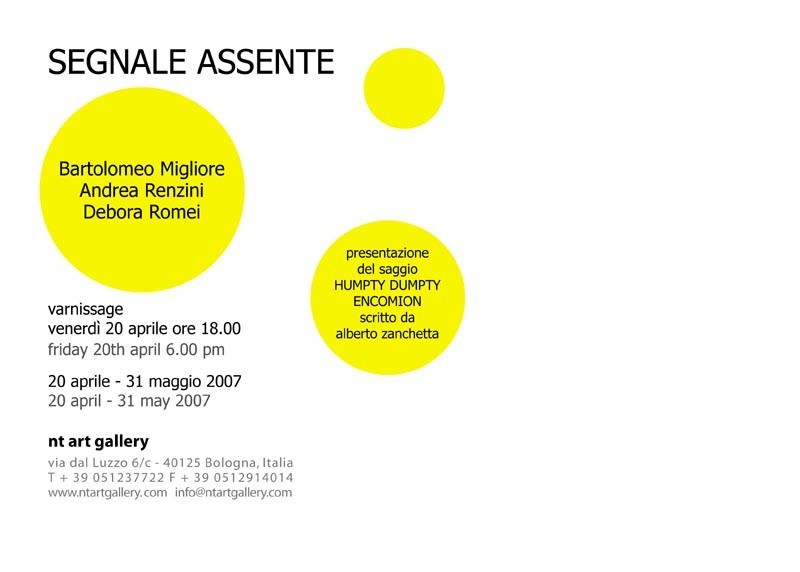 Un libro-catalogo edito dalla Vanilla edizioni, che include il saggio “Humpty Dumpty Encomion” scritto da Alberto Zanchetta, verterà sulle discrepanze e sulle affinità esistenti tra i due differenti emisferi: parola-segno / artista-critico. Bartolomeo Migliore, Andrea Renzini e Debora Romei saranno viceversa i “testimoni” della mostra, ciascuno rappresentato da una sola opera: tre proposizioni-progressioni che si mantengono in bilico tra il significante e il significato, tra ciò che è visibile e ciò che è esistente.