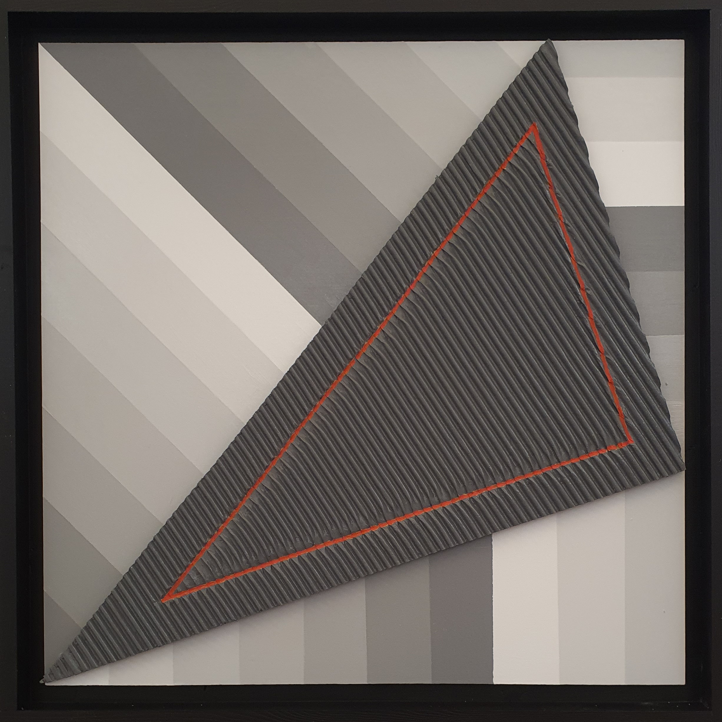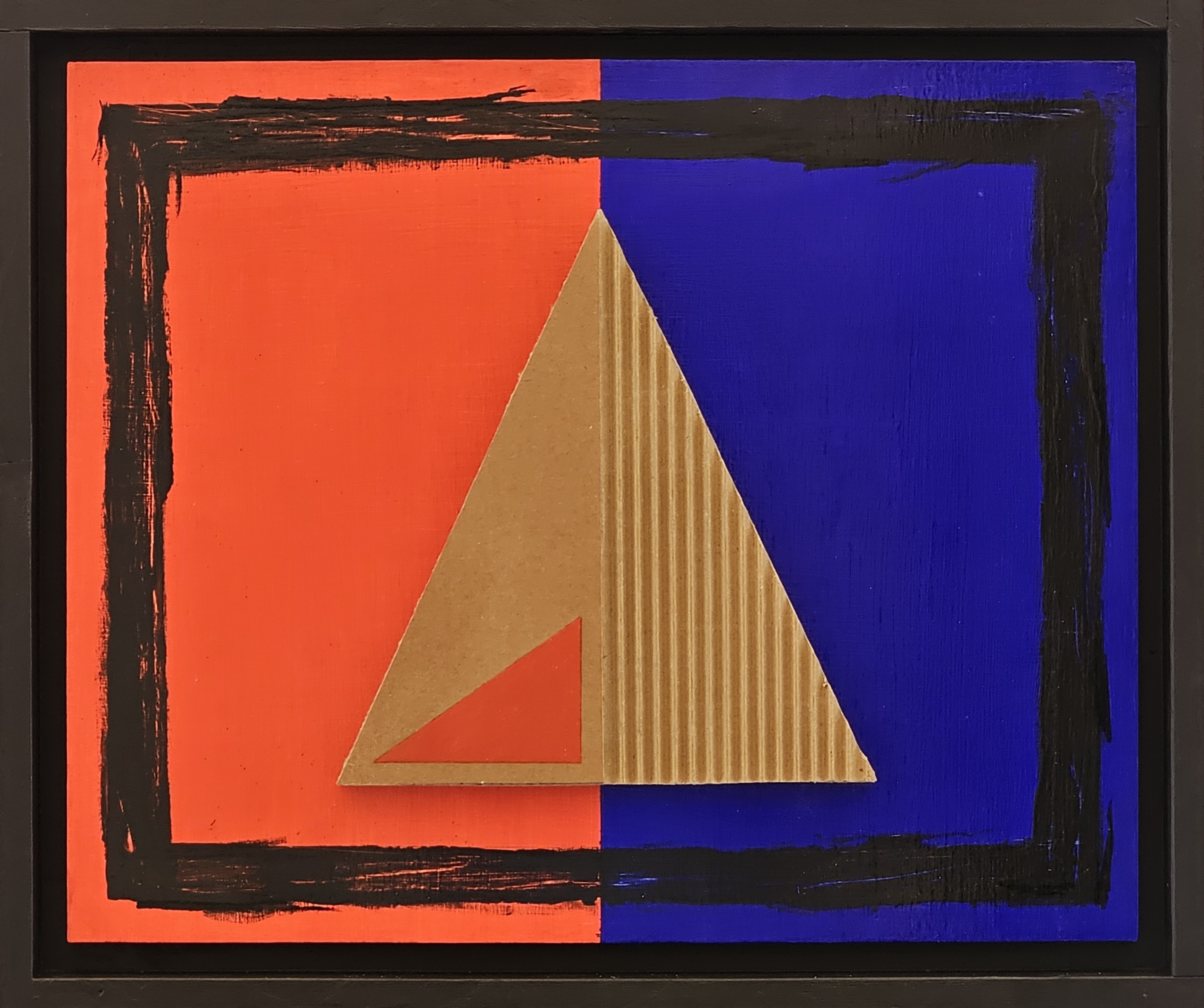 Il lavoro recente di Mauro Tersigni è composto da sintagmi compositivi contrastanti e ciononostante perfettamente bilanciati nella realizzazione di una sintassi figurale tanto essenziale quanto singolare. Per questa pura astrazione di volumetrica geometria vale quanto asseriva Constantin Brancusi “La semplicità non è altro che una complessità risolta”. Si tratta di attività creativa fatalmente lirica che organizza in un sistema plastico le proprietà materiali e cromatiche delle forme primarie. Geometrie come soggetti tangibili, assoluti protagonisti in una dimensione fuori dall’ordinario sebbene perfettamente definita e riconoscibile. È percepibile una tensione costante verso la destrutturazione, la sintesi e la ricomposizione che indugia nella contemplazione. Filosofia operativa che ha l’intensità e la concentrazione del pensiero orientale. Le opere in argomento sono segnali dell’immaginario che si imprimono indelebilmente nella mente dello spettatore per chiarezza declamatoria e per rigore progettuale. Le forme, ordinate e seducenti nella loro intima essenza, occupano spazi perimetrati dai colori netti e contrastanti. Si evidenziano campiture suddivise per accogliere le diverse morfologie plastiche e indicare la direzione strutturale complessiva. Lo spazio scandito da queste figure elementari è un luogo fermo, silenzioso e distante tanto da assumere caratteristiche pressoché surreali. Le sagome, perlopiù collages di materiali poveri ma ricercati, assumono un equilibrio dialettico tra di loro apodittico di semplicità e raffinatezza formale. Triangoli, quadrati e rari rilievi circolari si stagliano su scenografie minimaliste, oppure sono invasi da lettere a stampa o rapidi gesti pittorici che impreziosiscono con gusto informale il risultato sia estetico che contenutistico. Le “News” si moltiplicano e si inseguono in un crescendo comunicativo di originalità e di stile, dove il vocabolo sostiene l’immagine e viceversa. L’artista attraverso quest’ultima produzione, dal piglio riduzionista, rinnova la concezione dell’arte aniconica per inoltrarsi nella ricerca di una realtà che aborrisce, come già detto, la complessità. In questo modo analizza la suggestione della forma, la consistenza del colore e l’incanto della parola. E si mostra una realtà nuova, una realtà possibile non solo nella fantasia dell’autore ma anche nella concretezza della storia dell’arte. Così “Nero più” due triangoli e un quadrato assurgono a livelli di raffinatezza e fascino incomparabili. Un’opera con ascendenze evidenti nella Literalist Art ma che invoca un’interpretazione sia letteraria che estetica. Anche la forza della natura e la sua meraviglia sono sintetizzati con un quadro/simbolo di particolare efficacia comunicativa: “Etna” come vertice di bellezza materiale, dove la vera cenere lavica si inserisce nel linguaggio artistico. Una sorta di casellario naturalistico che incuriosisce e attrae per senso di realtà e di poesia.