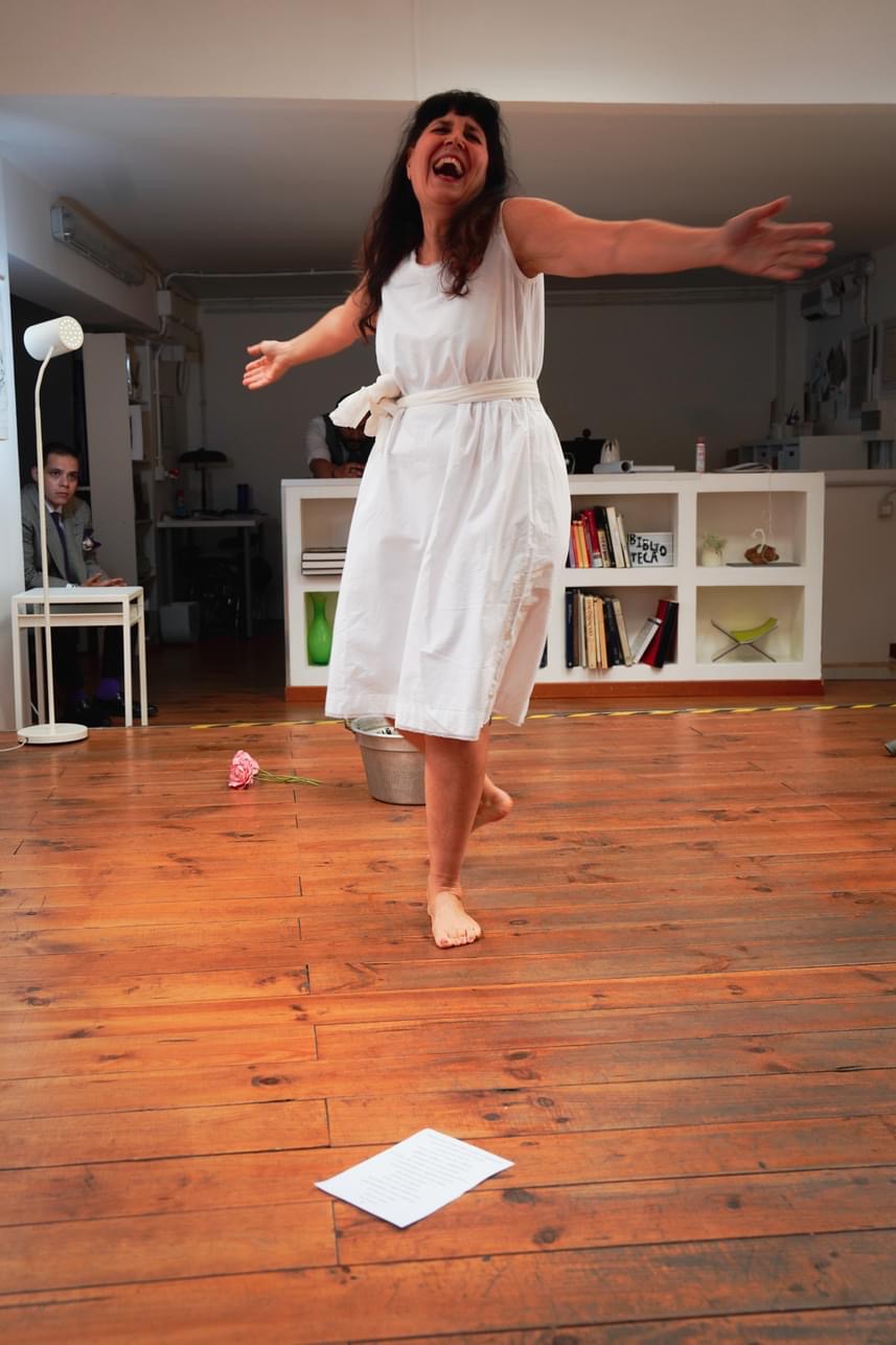 Fragilità e contraddizione. Pace e guerra. Partenza e viaggio. Ciò che siamo è il risultato di un susseguirsi di emozioni e sensazioni che l’artista trasforma in linguaggi visivi, gestuali, sonori e percettivi, capaci di raggiungere tutti quanti noi. Monica Argentino diventa grazie alla liturgia performativa una finestra aperta nella nostra interiorità. L’artista si interroga, si osserva, diventa spettatrice dei suoi conflitti e nello stesso tempo artefice. Una performance che racconta i tanti conflitti interiori che appartengono alla nostra esistenza, al nostro io.”