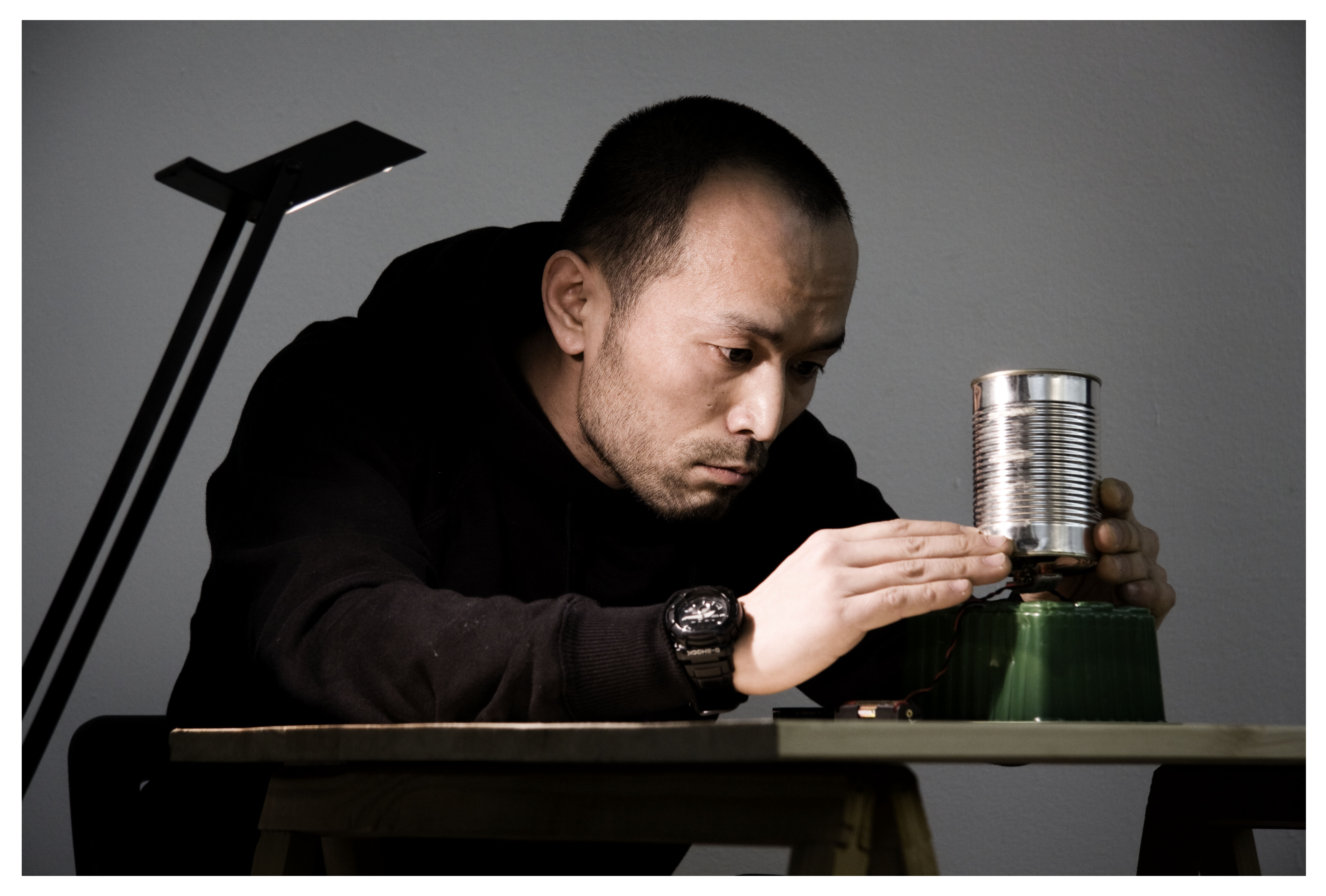 Giapponese residente a Berlino da più di un decennio, Seiji Morimoto si concentra su fenomeni acustici instabili, frutto dell’interazione tra oggetti di uso quotidiano e media tecnologici.