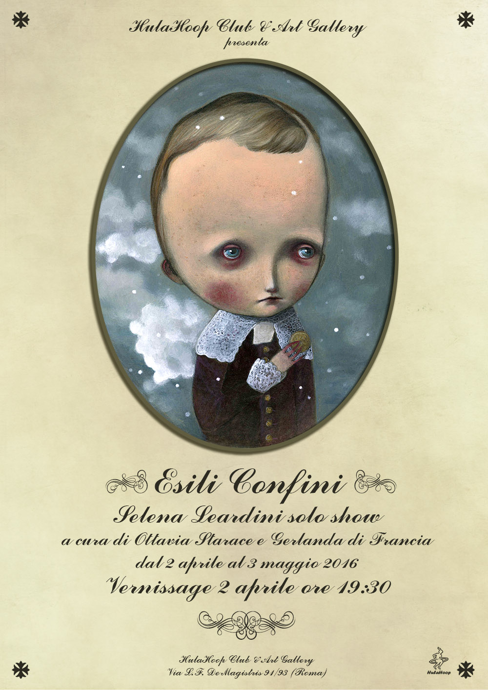 Il 2 aprile 2016 l'HulaHoop Club & Art Gallery presenta Esili Confini mostra personale di Selena Leardini curata da Ottavia Starace e Gerlanda di Francia.