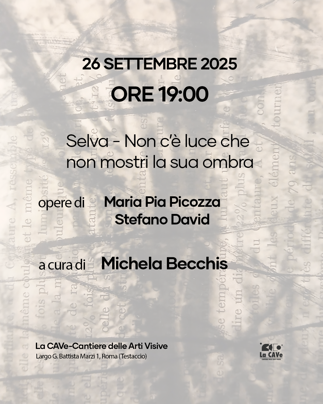 enerdì 26 settembre alle 19.00 La CAVe riapre al pubblico con una mostra inedita che unirà il lavoro di Stefano David e Maria Pia Picozza.