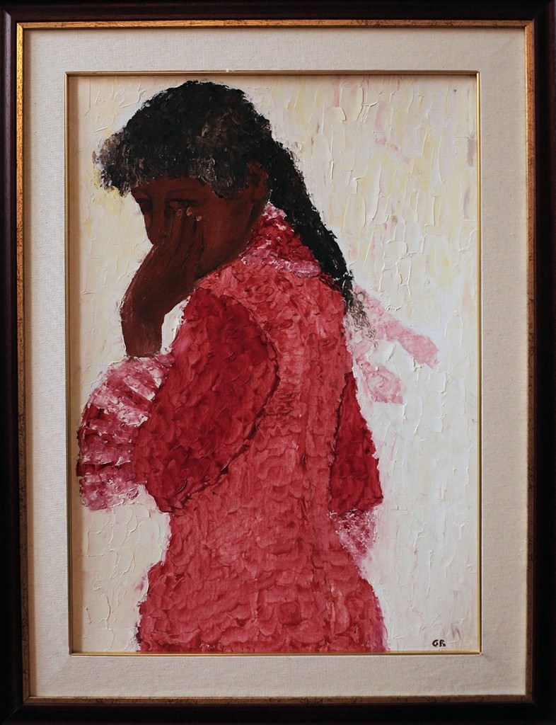 Nella pittura di Gabriella Riccio si mescolano le suggestioni dei suoi lunghi soggiorni in Arabia Saudita e in Africa, in uno stile di impronta naïf, vibrante di luce e di movimento, dove i colori esplodono in tutta la loro gioiosa vivacità. Per Gabriella la bellezza delle donne è nella sottile malinconia di una realtà quotidiana fatta di solitudine, anche quando non si è soli. Ma l’allegria della vita può tornare, se la si cerca nel rigoglio di un prato di margherite o nella meravigliosa semplicità di un bouquet di fiori di campo.