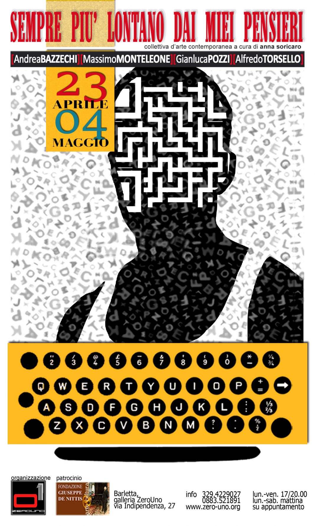 Sepulveda ispira un’esposizione complessa ed articolata in cui la libertà passionale di dipingere ha lo stesso effetto di una stanchezza nelle gambe: far perdere gli itinerari predefiniti, individuarne uno casuale che, forse, non porta da nessuna parte ed allontana dai pensieri. I quattro artisti prescelti camminano senza un itinerario ben definito dettati dall'entusiasmo generatore e si districano tra gesti intensi e casuali o colate di resina, figure amorfe e linee intricate. Opere nate casualmente mentre parlano di oggi e di ieri, delle passioni e dei perché generatori e che, soprattutto, intrigano l'osservatore in un percorso divertente e meditativo, lontano dai pensieri del quotidiano. Zerouno diviene uno spazio in cui sorridere e riflettere attraverso le opere d'arte poichè ogni artista ha una maturità avviata e preponderante e lascia segni determinati e corposi. Andrea Bazzechi, Massimo Monteleone, Gianluca Pozzi, Alfredo Torsello sono i protagonisti e i prescelti della complessità estetica poichè Andrea Bazzechi si esprime con piccoli formati che divengono fotogrammi estetici in cui un'attenta ricerca del colore unitamente ad una gestualità da tempo nota rendono la soluzione finale di grande eleganza. Massimo Monteleone è pacatezza svincolata in gesti esili ed intrecciati in cui tratti e toni delicati individuano soluzioni di gran classe e raffinatezza tanto da creare grandi poesie visive. Gianluca Pozzi rompe gli schemi espositivi attraverso opere insolite e frizzanti in cui i protagonisti dai tratti elementari divengono complementari di una tecnica accurata e precisa che non solo riesce ad incuriosire l'osservatore ma anche a lasciarlo sorridere da lontano e intrigarlo da vicino: un tripudio di talento mentale e tecnico. Alfredo Torsello evidenzia una pregevole maturità del colore attraverso una gestualità intensa e rapida che si paca nella grandezza di un cerchio in cui tutto parte e tutto torna, fulcro di un istinto grandioso e frizzante. Opere volutamente diversificate, emozionanti e significative, concettuali e gestuali, ponderate e istintive, lontane dal convenzionale che lasciano tremare le gambe agli osservatori per tecnica, toni ed intensità visiva.