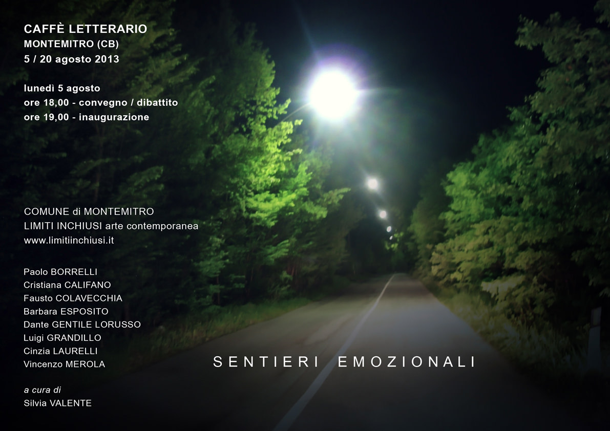"Sentieri Emozionali" è una mostra provocatoria al contrario, perché ha il coraggio di essere, appunto, fraintesa, è lo strumento dialettico per innescare il dibattito prima tra gli artisti e poi con il pubblico. Il tentativo è quello di raggiungere immediatamente il cuore del problema. Parlare dei lavori esposti/allestiti e del perché e del "come" li si è immaginati/realizzati. Il "manufatto" di un'opera non è esclusivamente il materiale che lo compone ma la struttura del pensiero, dove pensiero non è solo "gesto" intellettuale ma anche percorso emotivo e esperienza poetica. Queste le tracce che un evento, per quanto periferico, deve lasciare in vista o almeno deve tentare di far diventare "discutibili".
