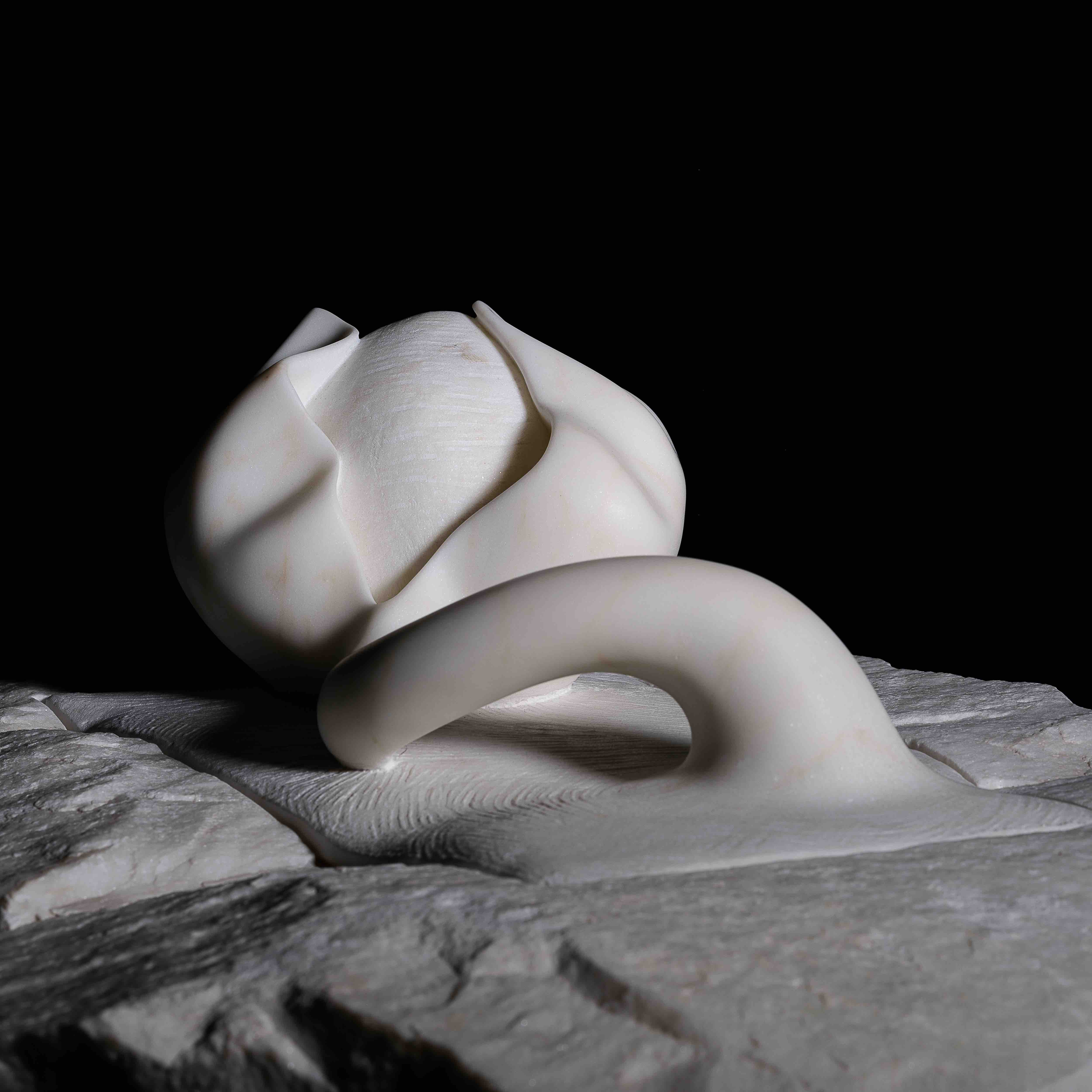 Beatrice Taponecco (Sarzana, La Spezia 1987) si è laureata in Scultura presso l’Accademia di Belle Arti di Carrara nel 2019. Attualmente lavora nel suo atelier a Torano e presso la Cooperativa Scultori nel Polo delle Arti San Martino a Carrara. Il suo linguaggio artistico è sempre stato caratterizzato da un profondo desiderio di conferire leggerezza alla materia, plasmando la dura pietra per renderla morbida, trasparente e sensuale. Il suo lavoro artistico si concentra su forme che esprimono delicatezza e forza insieme, sono ispirate dall’osservazione diretta della natura e del paesaggio. Beatrice Taponecco ha ottenuto riconoscimenti in concorsi di scultura nazionali e internazionali, tenuto mostre personali e partecipato ad importanti collettive. Si può citare tra le altre, la personale “A Tu per Tu”. Beatrice Taponecco - Piergiorgio Balocchi, a cura di Maria Mancini presso Palazzo Binelli a Carrara, la mostra personale “Sentire la Forma”, a cura di Laura Barreca, project-room#1 al mudaC | museo delle arti Carrara e “Venezia Madre” a cura di Paolo Asti e Valerio Dehò e “Forme nel Verde”, San Quirico d’Orcia a cura di Carlo Pizzichini. Ha vinto premi significativi, come il Primo Premio al Concorso di Idee per il PREMIO STREGA nel 2019 e il Primo Premio CORTI MILANO 2020 per la realizzazione di un’opera monumentale. La sua presenza in ambito artistico è rafforzata dalla partecipazione a simposi internazionali di scultura e alla realizzazione di opere di grandi dimensioni per committenze private. Tra le sue opere più recenti, “Una foglia è il divino nell’Universo” al Museo d’Arte sul Mare a San Benedetto del Tronto nel 2023 e “Feuille Femelle” per il MO.C.A. Montecatini Contemporary Art.