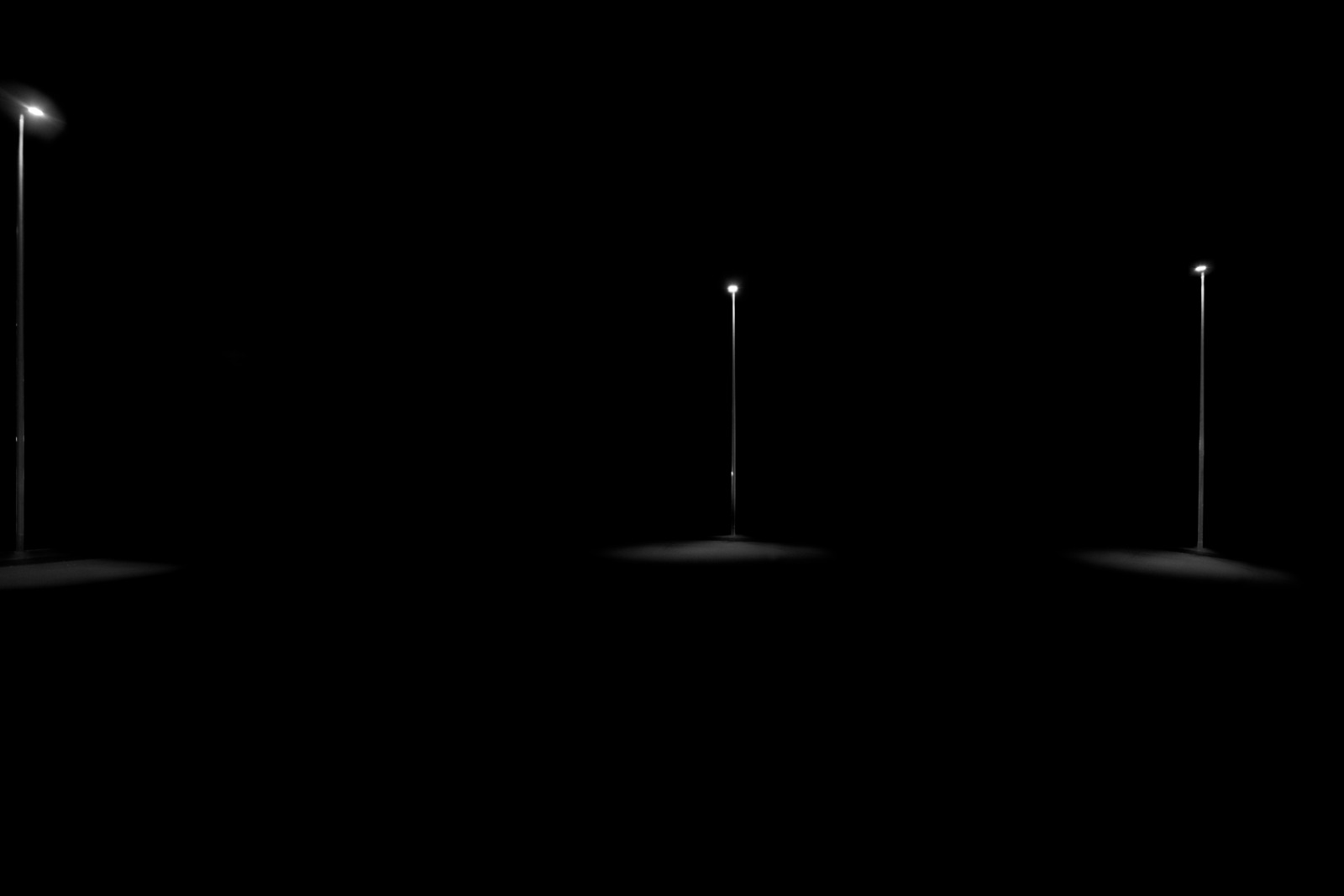 Carola Allemandi decide di esporre Notturni (2018-2019), suo primo lavoro di ricerca con cui indaga il paesaggio urbano, quasi totalmente assorbito da una densa oscurità. Lo sguardo della fotografa isola alcuni particolari – i lampioni di un viale cittadino, un fazzoletto di prato erboso, una balaustra in pietra – che diventano così riferimenti essenziali, fari nella notte per potersi orientare negli abissi della sua interiorità. In questi scatti, i paesaggi di Allemandi non sono documentazione di ciò che il suo occhio incontra nel cammino dell’esistenza, quanto metafora di un’esplorazione interiore, di una ricerca intima del sé.