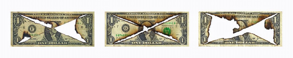 Immagini detournate su cui vengono modellate forme, fotografie che hanno subito una obsolescenza temporale e altre che declinano prassi trasformatrici, superfici in tessuto utilizzate come sculture organiche latenti che annodano trazioni verso il centro o con una manifesta tecnica serigrafica assecondando impietrite fisionomie, una pittura su plexiglas realizzata attraverso processualità sperimentali come evoluzione del dripping, objet trouvé nella memoria dell’oggetto con connotazioni soggettive, banconote trattate che non eludendo la questione del capitalismo mettono in genesi la differenza finanziaria ed economica. Una masnada che precipita nel vortice del soggetto agendo nella necessità di una invasione di campo con una impostazione critica o antidominante a corredo nell’uso di differenti strumenti, atlanti visivi e vocabolari espressivi. L’assunzione del principio di totalità è marcatamente evinta in alcuni lavori che allargano e contestualizzano i segnali identificativi, mentre uno sfondo denso di conseguenze specificatamente intime restituisce orizzonti perduti. (Piero Pala)
