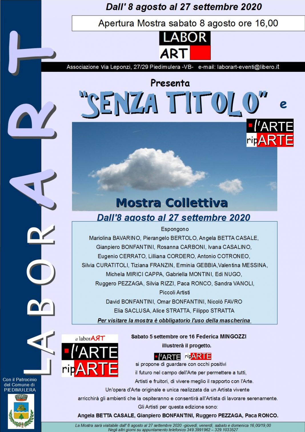 Mostra collettiva, 20 artisti presentano opere con diverse tecniche, oggetti in ceramica e ceramica raku, vetro Tiffany, espongono anche 6 bambini dai 5 ai 10 anni. Quattro Artisti partecipano al Progetto “L’ARTE ripARTE” liberando i loro studi e mettendo a disposizione opere di piccolo formato.