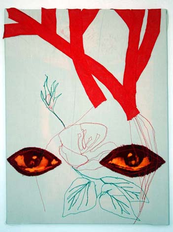 I dipinti di Sepideh sono molto grandi, mescolano materiali della propria storia personale a quelli della tradizione persiana. Stoffe e tessuti, il cuore dei paesaggi interiori vuole rappresentare il sole nel paesaggio esterno, fonte principale di vita.