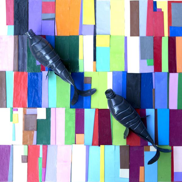 La plastica, che altrimenti avrebbe soffocato il mare, prende la forma di pesci e tartarughe attraverso un lavoro neoplastico, molto pop. Le opere esposte si propongono di dare senso e valore alla plastica, nello specifico alle bottiglie: oggetti che per loro natura non nascono belli, ma possono div