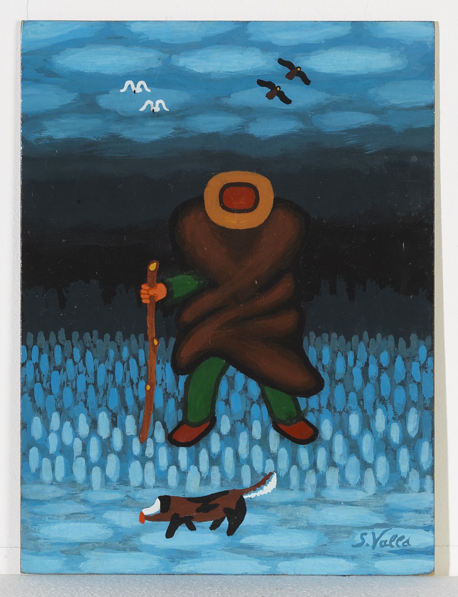 Serafino Valla (Luzzara, 1919 – Reggiolo, 2014) è un artista autodidatta. Nell’infanzia ha vissuto in un ambiente instabile e precario a causa dei frequenti traslochi, pertanto la frequenza scolastica non è stata regolare. Psicologicamente insicuro ed incompreso, si rifugiava in una appagante contemplazione della natura. Trascorreva molto tempo camminando lungo l’argine del Po, il grande fiume che rappresentava per lui un mistero. Arruolato come volontario nell’esercito, ha partecipato alla campagna di Russia, dove rimane ferito. Nel 1955 si sposa e va a vivere a Reggiolo. Nel 1959, venti giorni prima della nascita della figlia Giuseppina, la morte del fratello Giuseppe in un incidente stradale lo porta ad una grande crisi esistenziale. Negli anni Sessanta, ha iniziato a ricercare nella pittura, nella scultura e dentro alla filosofia il senso del suo esistere, arrivando a trovare una sua forma espressiva caratterizzata da uomini con il capo chino coperti dal cappello, dalla natura e dall’amato Po. L’arte diviene lo strumento di difesa e il rifugio, che porta alla luce le sue emozioni e la sua spiritualità. Appartenuto alla prima generazione dei pittori naïf, da cui si differenzia in modo sostanziale proprio per la razionalità, negli anni Settanta realizza la prima mostra personale a Luzzara, dove viene scoperto da Cesare Zavattini. Negli anni Novanta ha esteso la sua comunicazione visiva alla rappresentazione plastica, per dare alle sue immagini la terza dimensione, modellando l’argilla, per poi dedicarsi, nell’ultima parte del suo percorso artistico, alla natura morta. Nel 2014, viene allestita la sua ultima mostra, Esistenzialità ed Arte (dal titolo della monografia a cura di Alfredo Gianolio, pubblicata nel 2012) a Palazzo Bentivoglio di Gualtieri. Nel paese di Antonio Ligabue, Valla ha chiuso la sua carriera con una grande consapevolezza, che lo ha accompagnato fino alla morte, avvenuta dopo quattro mesi. Da allora, la figlia Giuseppina diventa curatrice delle sue opere ed inizia un nuovo percorso di valorizzazione dell’artista. Serafino Valla, con la sua arte gentile e introspettiva, ha esposto sia a livello nazionale (Milano, Mantova, Parma, Foggia, Messina, Napoli, Bologna, Modena, Sabbioneta, Gualdo Tadino, Roma, Firenze, Reggio Calabria) che internazionale (Berlino, Tirana, Barcellona, Abu Dhabi, Budapest, Zagabria, Lugano e Zurigo), con mostre personali e collettive. Sue opere si trovano al Museo Nazionale delle Arti Naïves Cesare Zavattini di Luzzara, al Museo Cervi di Gattatico, al Museo dei Madonnari di Curtatone, in Jugoslavia, Svizzera, Francia, Spagna, Olanda e in collezioni pubbliche e private. L’artista è inoltre presente in numerose pubblicazioni, con testi critici dedicati nei libri di storia dell'arte Archè, Lògos e Psiché e nella serie di volumi Profili d’artista e Le scelte di Puntelli, tutti editi da Giorgio Mondadori. Il 6 ottobre 2019, cent’anni dopo la nascita di Serafino Valla, è stato presentato a Luzzara il film artistico-biografico Pecore in transito - Meditazione tra inconscio e presente.