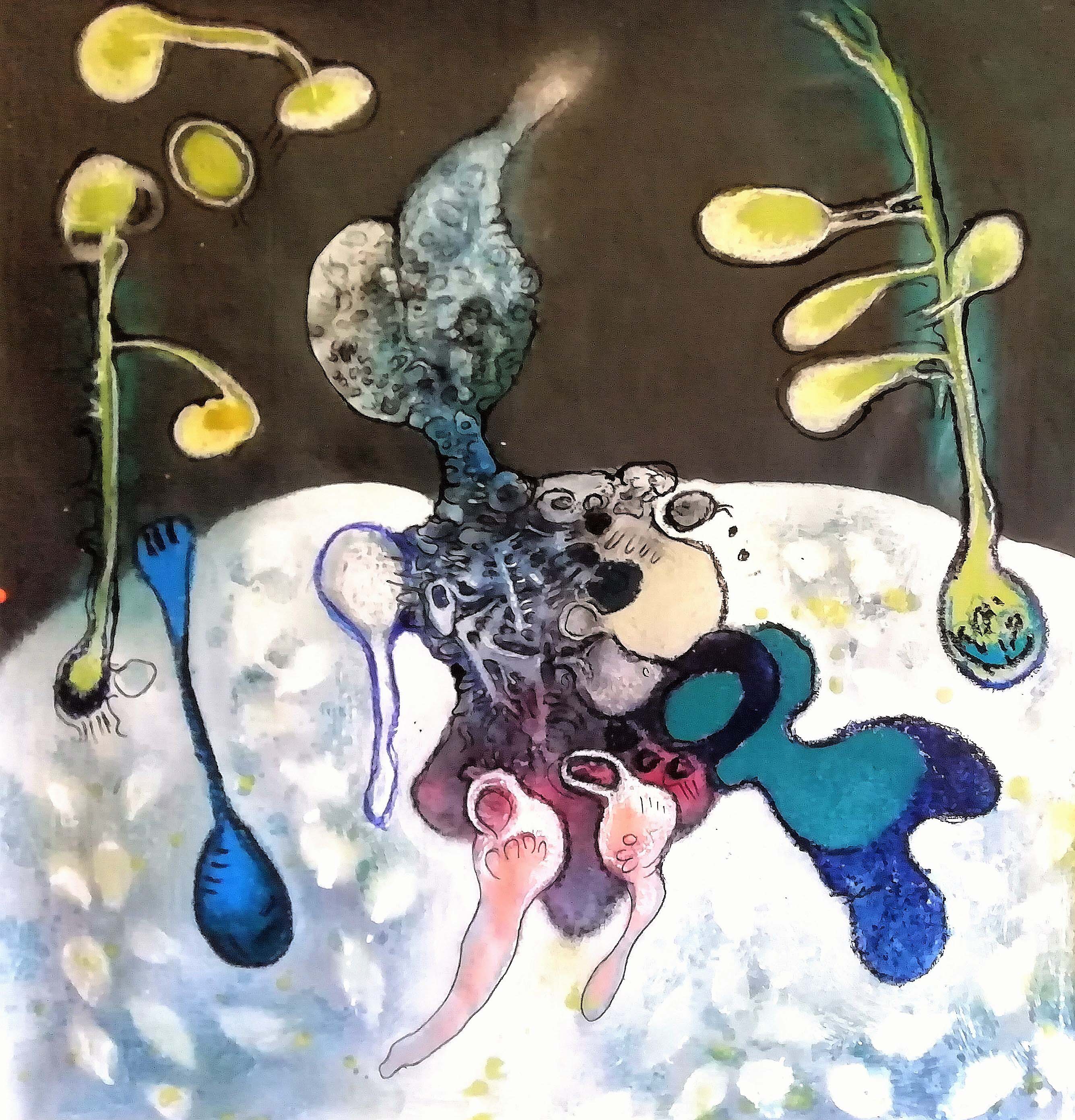 Un ‘’mondo altro’’ in gestazione, che rende ragione a quanto affermato da Fabio Benincasa nel suo passo critico sulla mostra dell’artista al Museo Mastroianni di Marino:’’…. una ricerca sulle tracce di un mondo post-umano che, in questo caso, sembra situarsi fuori dall’orizzonte storico, nell’ucronia di un mondo onirico sospeso tra sogno e ipotesi metafisica.’’
