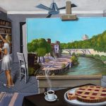 Coinvolgenti ed enigmatiche, le tele dell’artista nascondono un piccolo mistero da risolvere che si cela dietro la presenza di una mano o di persone raffigurate di spalle o semplici oggetti poggiati sul tavolo, come se qualcosa dovesse avvenire da un momento all’altro.