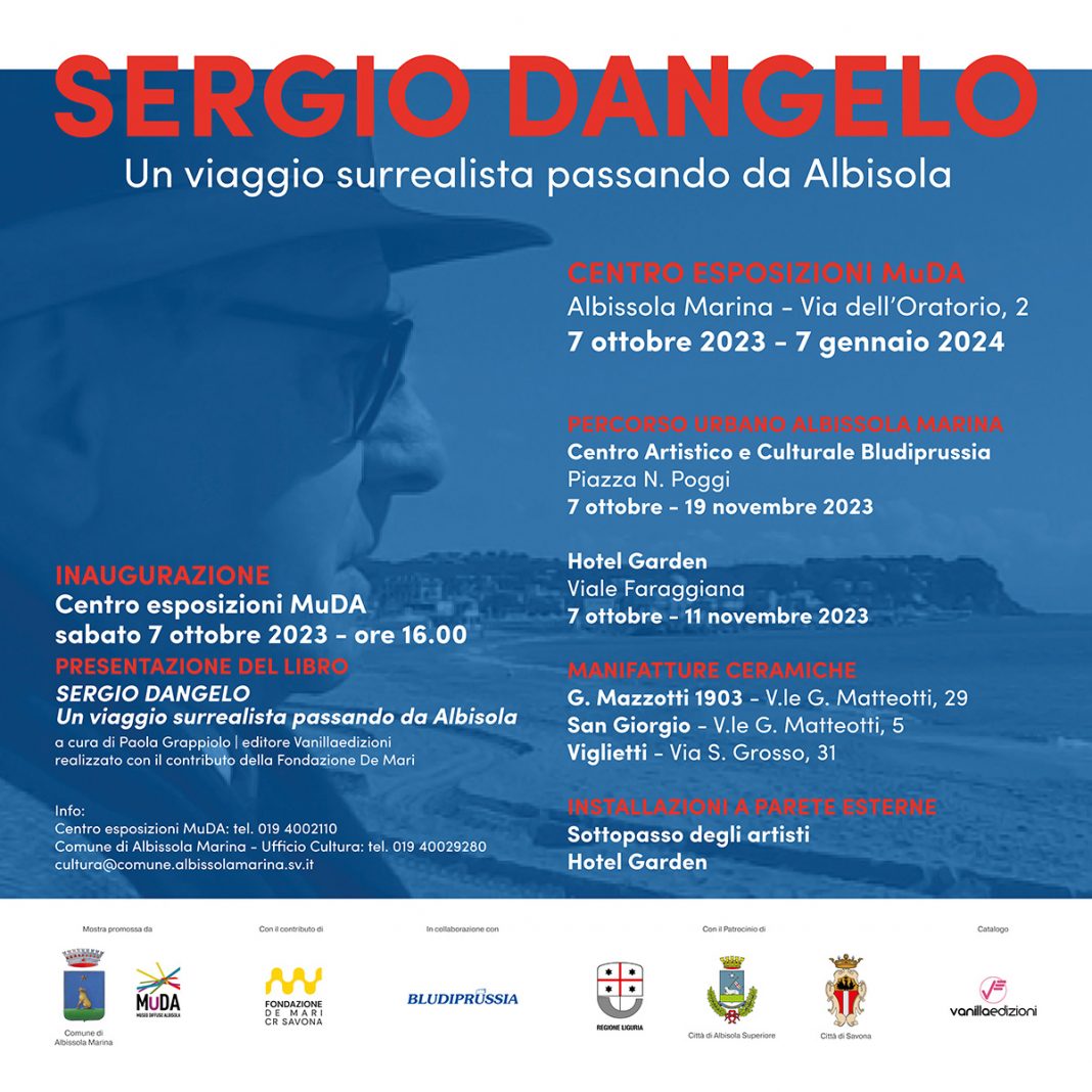 A un anno e mezzo dalla scomparsa del Maestro Sergio Dangelo (19.04.1932 – 4.01.2022), la città di Albissola Marina ne omaggia il genio e la memoria con la presentazione di un libro sull’artista, una mostra promossa dal Comune di Albissola Marina, entrambi a cura di Paola Grappiolo